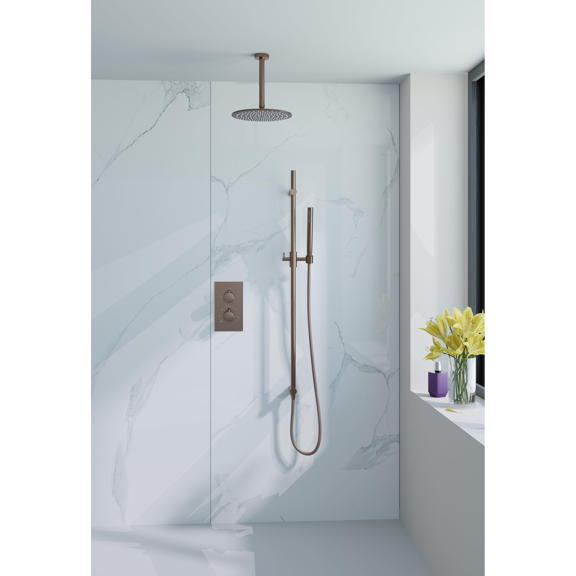 FugaFlow Eccelente Accessoire Barre de douche coulissante avec coude mural intégré - 90cm - Cuivre brossé PVD (Cuivre)