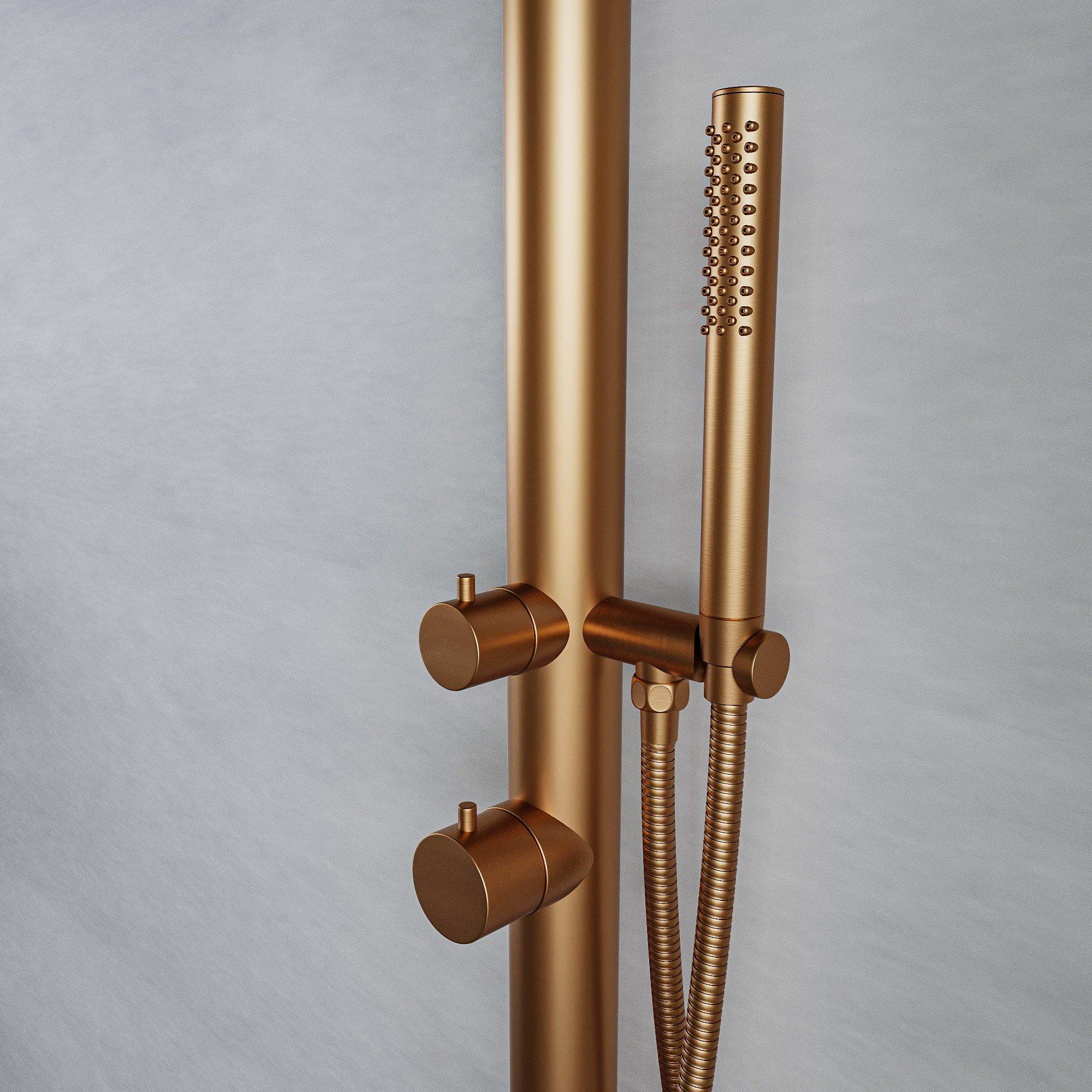 FugaFlow Eccelente Acces Deluxe Douche extérieure autoportante - Inox 316 - douchette - douche de pluie - Cuivre brossé PVD (Cuivre)