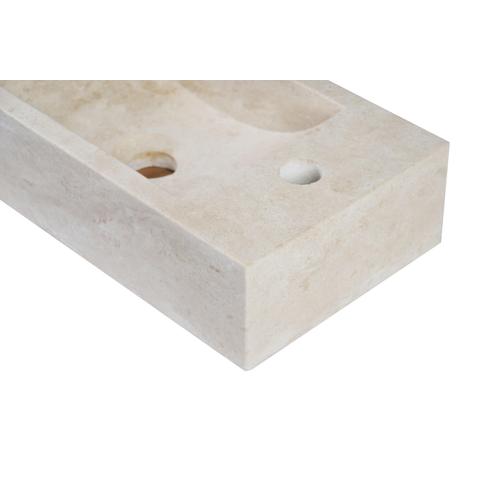 FugaFlow Eccelente Pietra Ensemble de fontaine - 40x22x10cm - trou de robinet à droite - robinet de fontaine chrome - bouchon de vidange - siphon abaissé - pierre naturelle marbrée