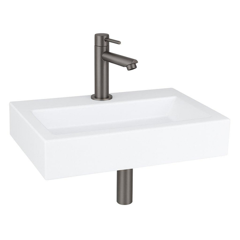 FugaFlow Eccelente Pietra ensemble de lavabo - 38x7x24cm - 1 trou de robinet - céramique - robinet de lavabo gunmetal - blanc brillant