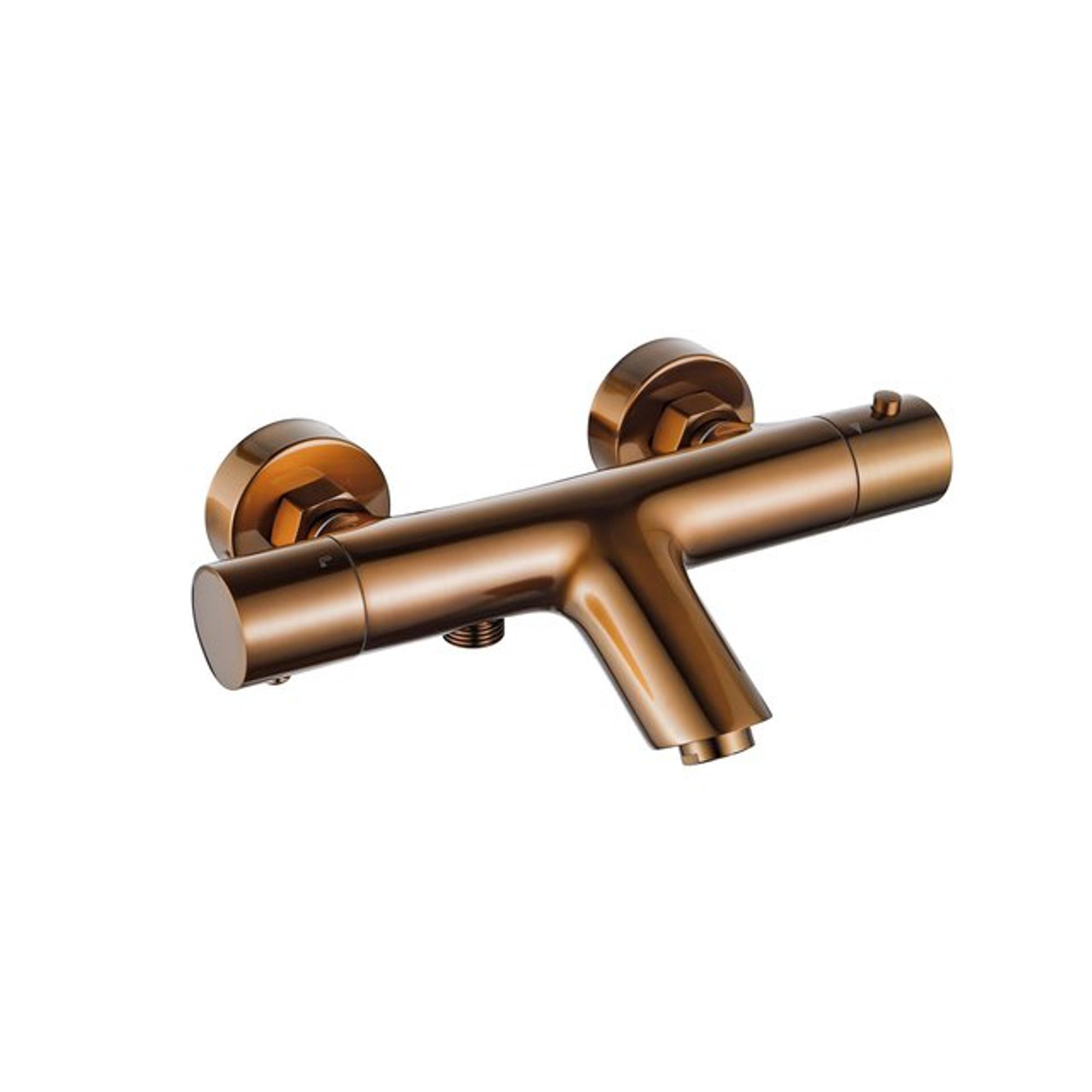 FugaFlow Eccelente Mitigeur thermostatique de baignoire avec douchette ronde, support de douchette et flexible de douche métallique Cuivre brossé PVD (Cuivre)