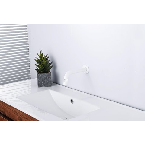 FugaFlow Eccelente Ensemble robinetterie pour fontaine - encastré - bec 18cm - raccourcissable - siphon - bouchon toujours ouvert - mat blanc