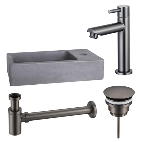 FugaFlow Eccelente Pietra ensemble de lavabo - 40x22x8cm - 1 trou de robinet - robinet de lavabo gunmetal - béton