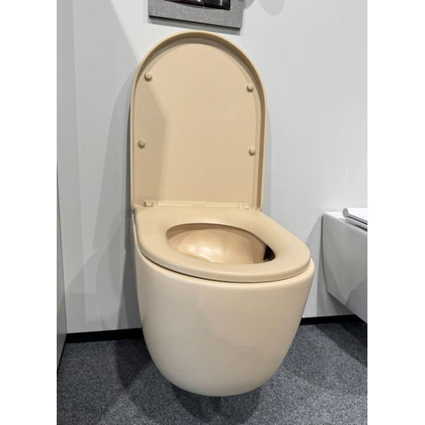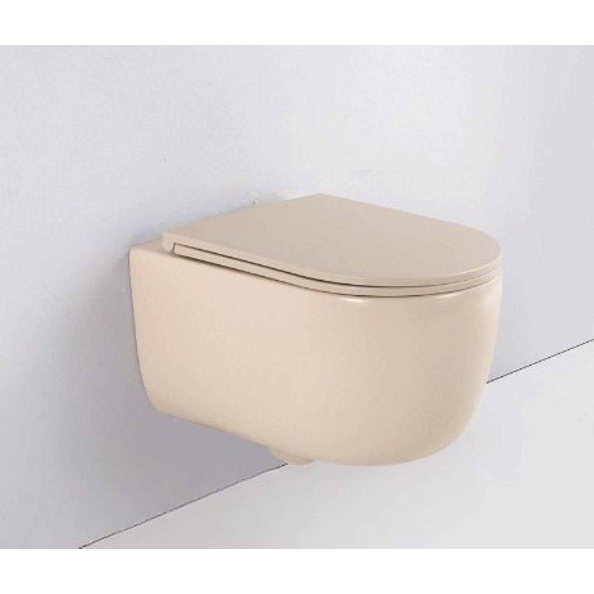 FugaFlow Eccelente Pietra Swirl Ensemble WC suspendu - 36,5x53,0cm - chasse profonde - sans rebord - abattant slim à fermeture douce - beige