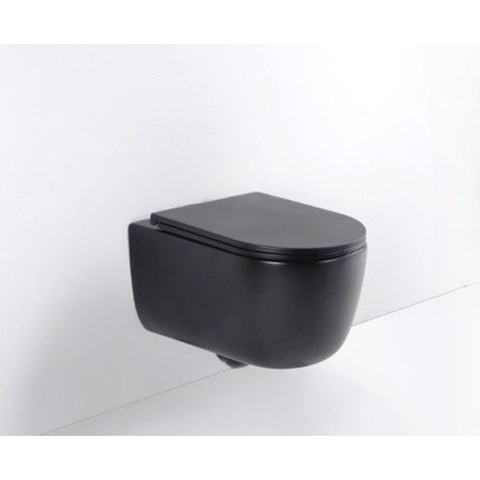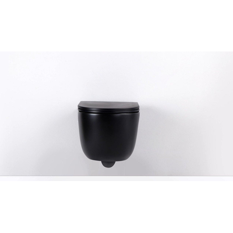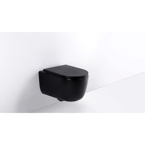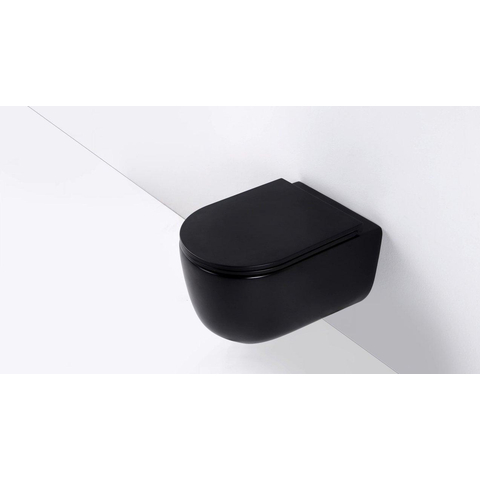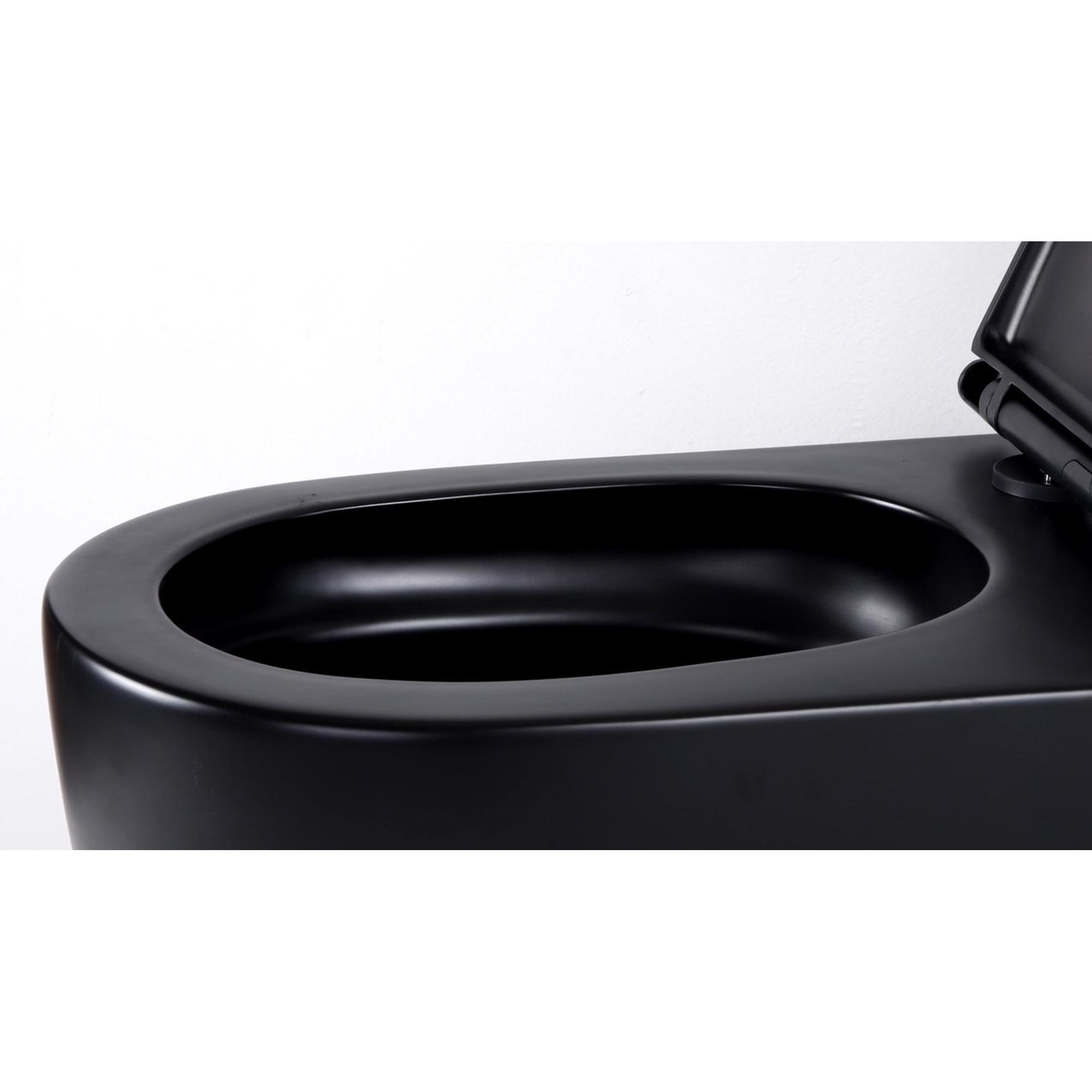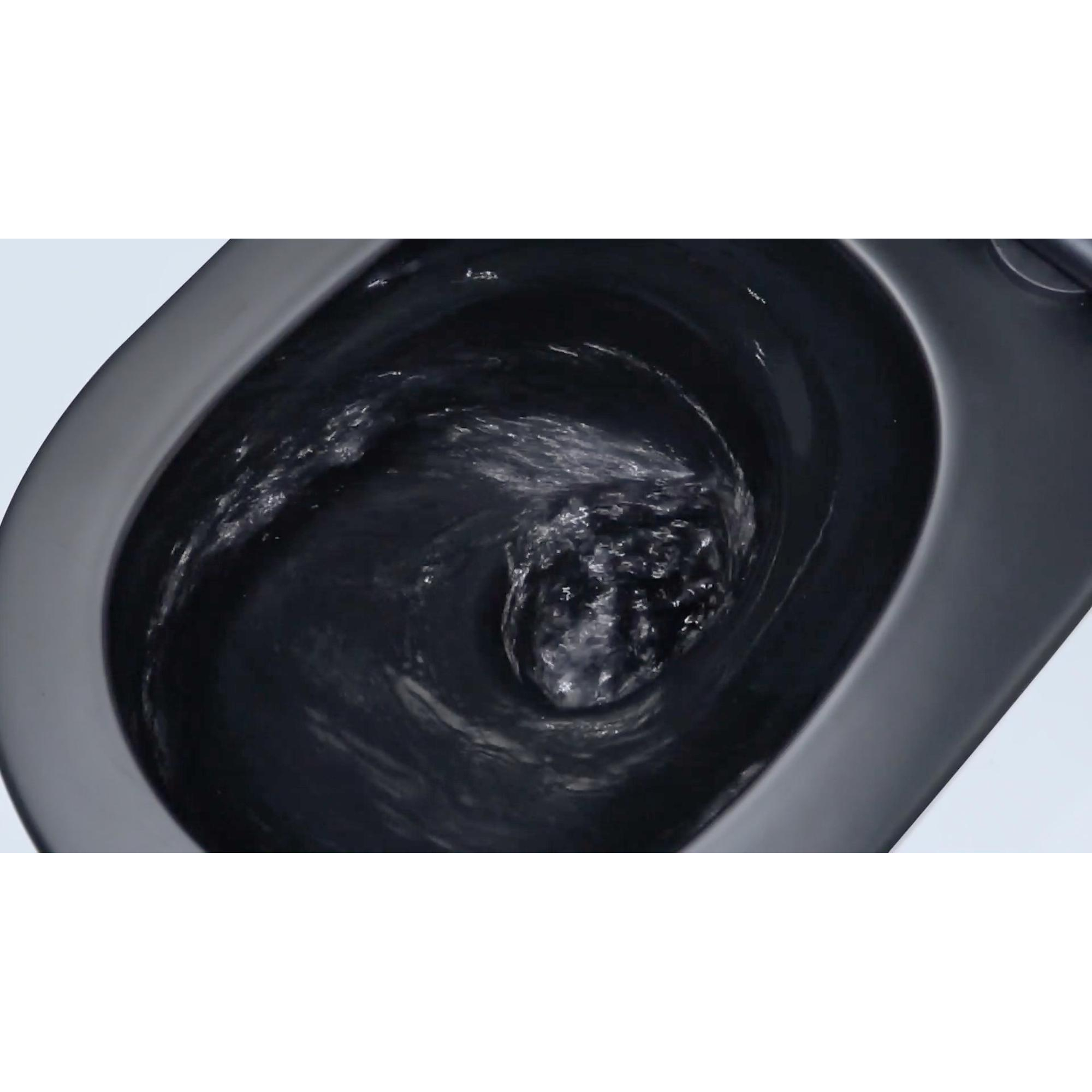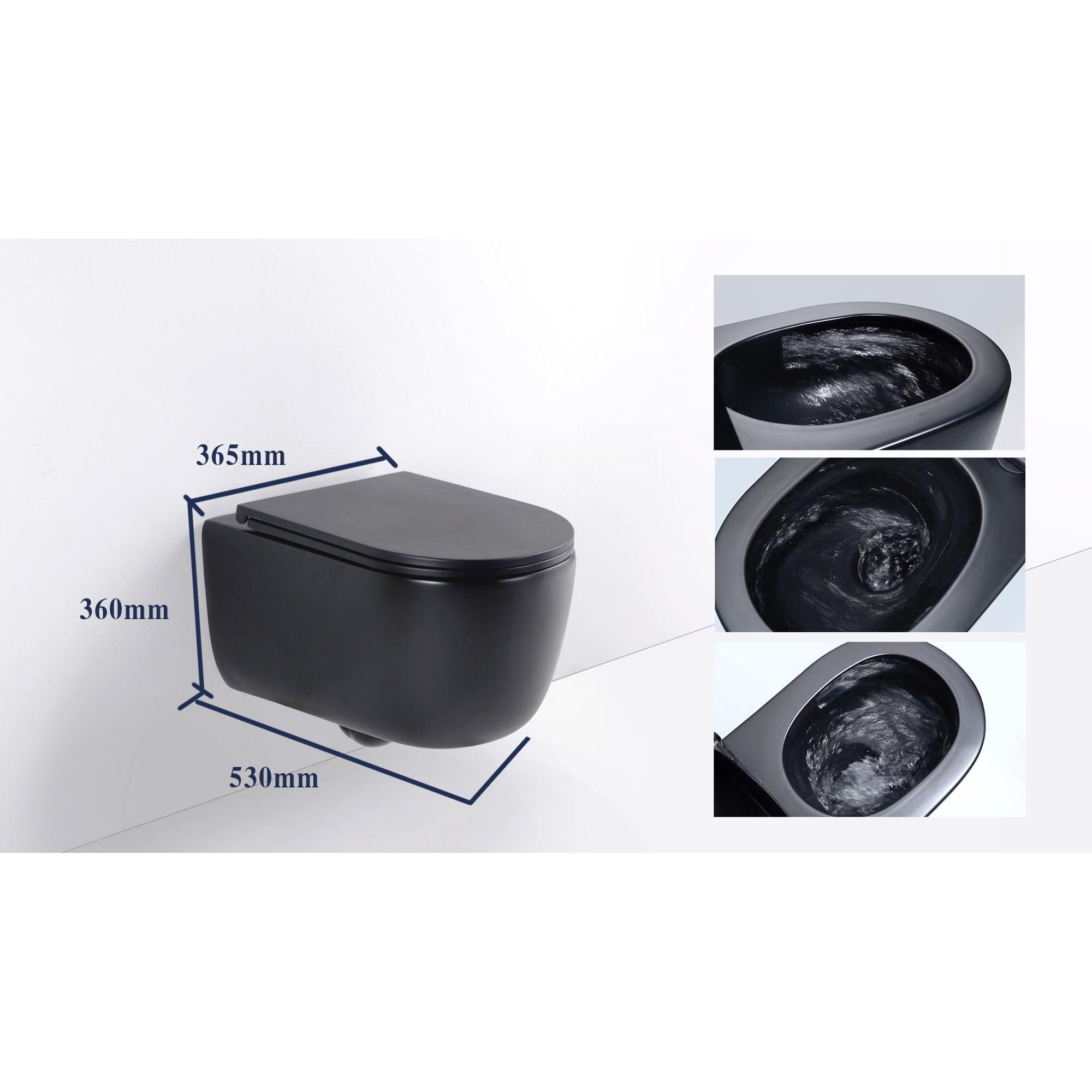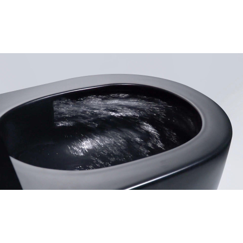 FugaFlow Eccelente Pietra Swirl Ensemble WC suspendu - 36,5x53,0cm - chasse profonde - sans rebord - abattant slim à fermeture douce - noir mat
