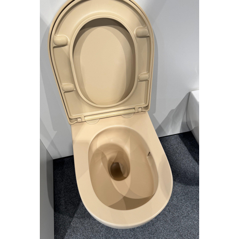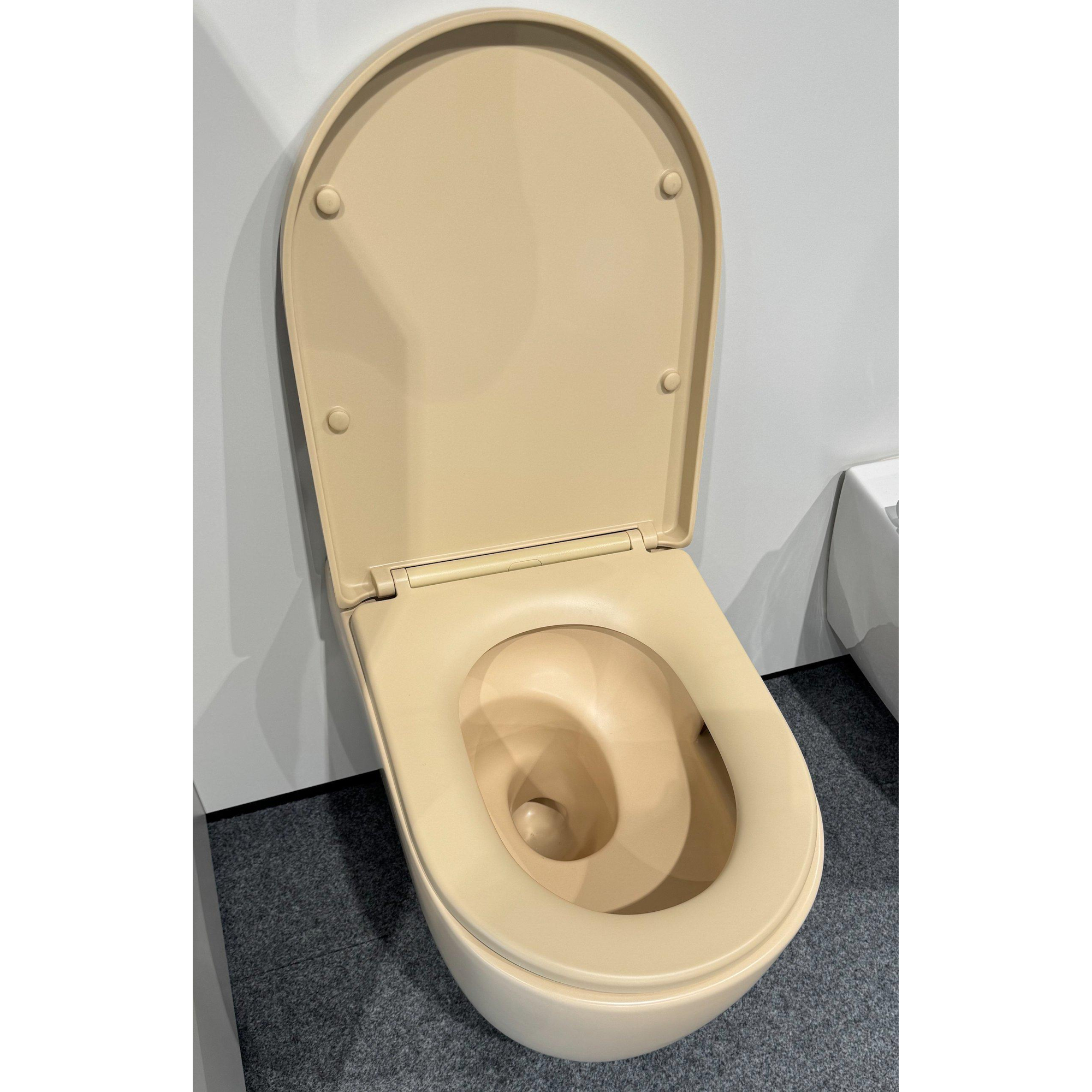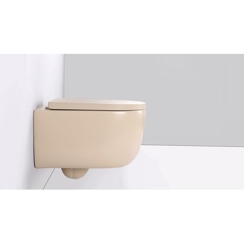 FugaFlow Eccelente Pietra Swirl Ensemble WC suspendu - 36,5x53,0cm - chasse profonde - sans rebord - abattant à fermeture douce - beige