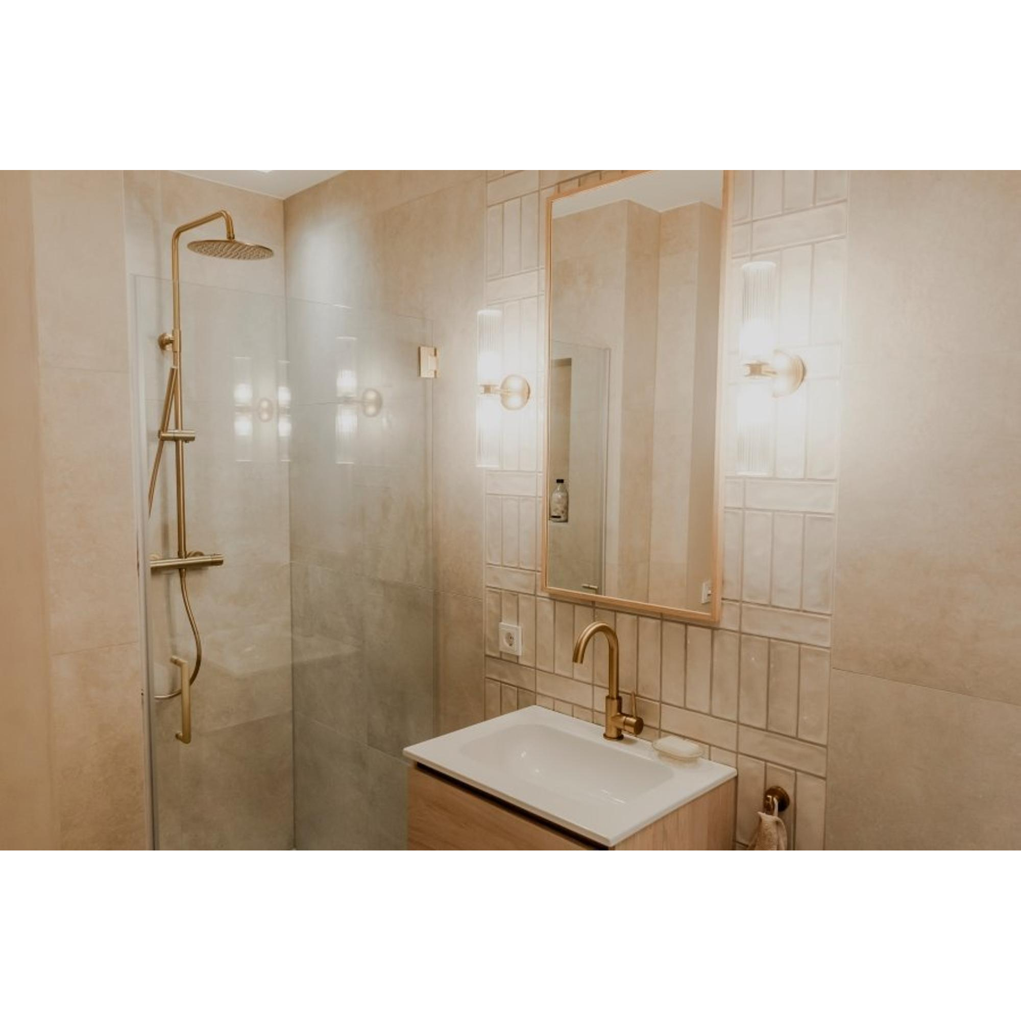 FugaFlow Eccelente Vetro Porte de douche - 100x200cm - charnières - poignée de porte - plat - verre de sécurité clair - Laiton brossé PVD (Or)
