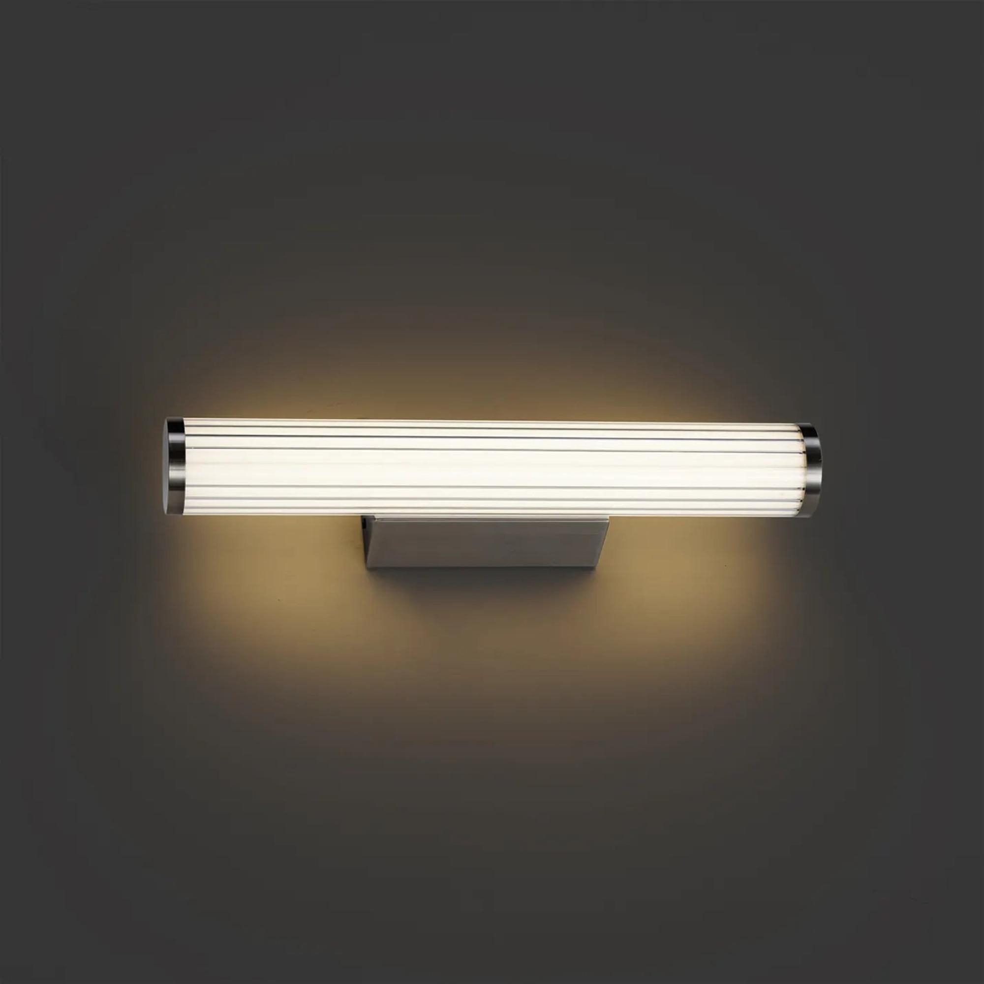Cette applique murale est conçue pour créer une lueur chaleureuse et accueillante, exactement ce que vous souhaitez dans un espace où vous voulez à la fois vous détendre et bien commencer votre journée. La source lumineuse LED intégrée assure une répartition uniforme de la lumière, ce qui limite les ombres autour du miroir et vous permet de bien vous voir. En même temps, la lumière est suffisamment douce pour ne pas éblouir, idéale pour une routine du soir apaisante ou comme éclairage d’ambiance discret dans le couloir ou la chambre. Comme la lampe est disposée horizontalement le long du mur, elle éclaire une plus grande surface, ce qui est particulièrement pratique au-dessus d’un meuble-lavabo ou d’un buffet. Vous combinez ainsi ambiance et fonctionnalité en une solution élégante.