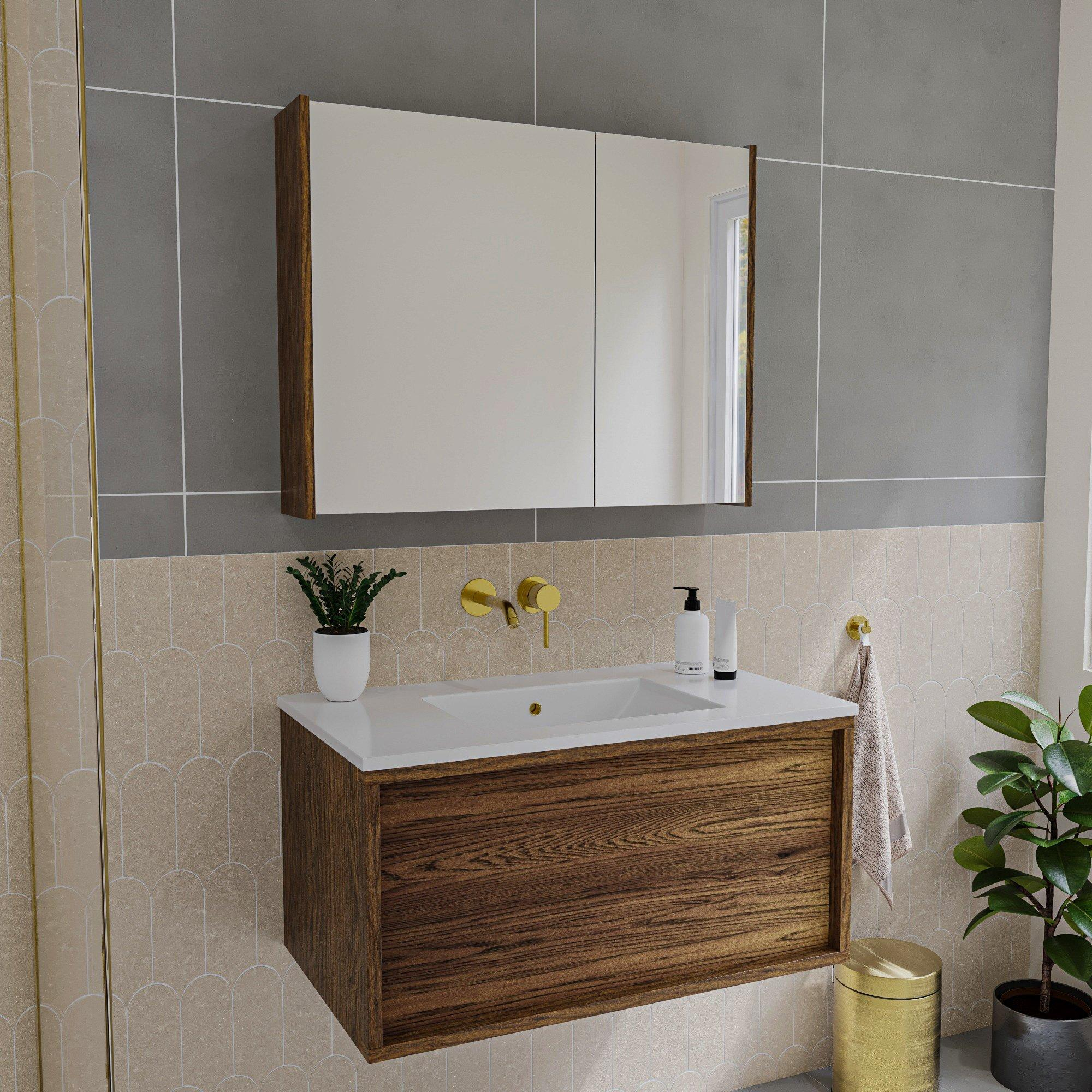 Saniclass Holz Frame Armoire miroir - 80x63x16cm - incluant panneaux latéraux - Walnut pure