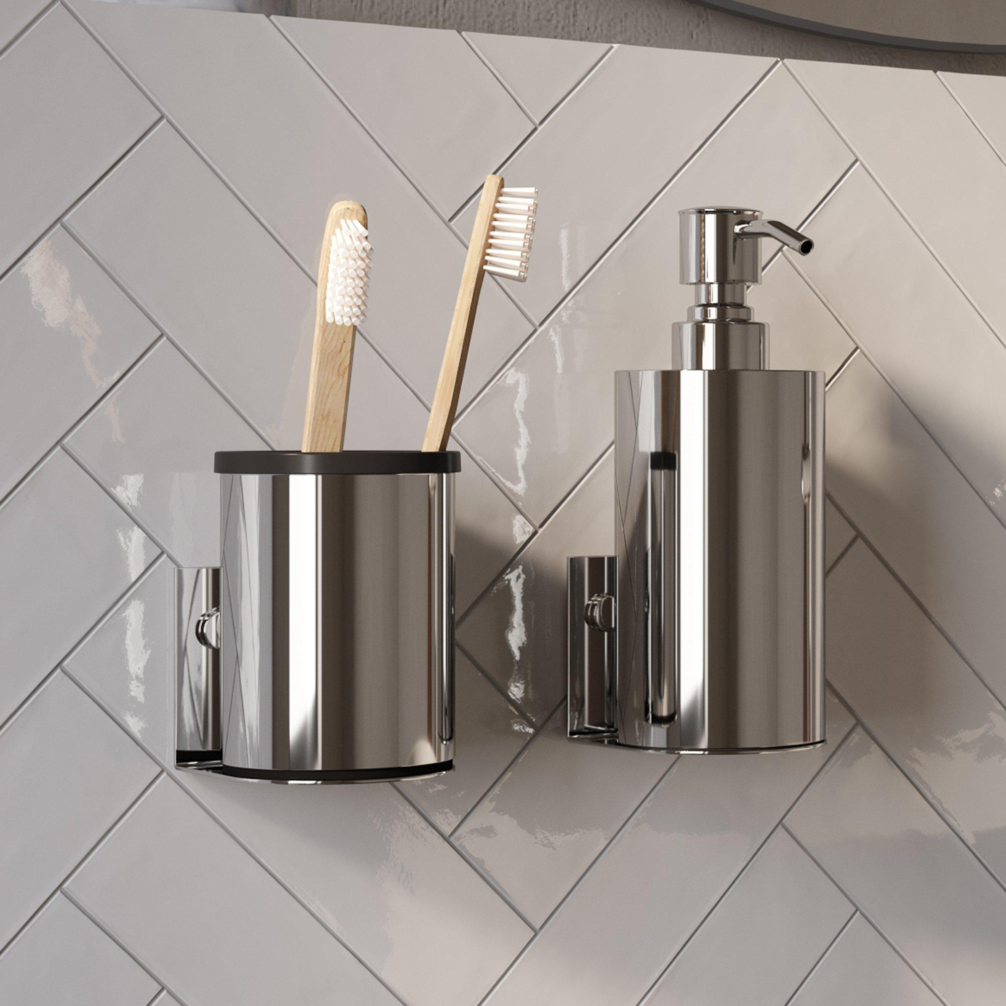 BRAUER Ensemble d'Accessoires - distributeur de savon - gobelet - avec fixation murale - surface magnétique - chrome