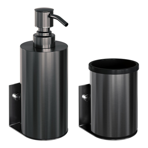 - Set d'accessoires avec distributeur de savon et gobelet en gunmetal brossé (anthracite)