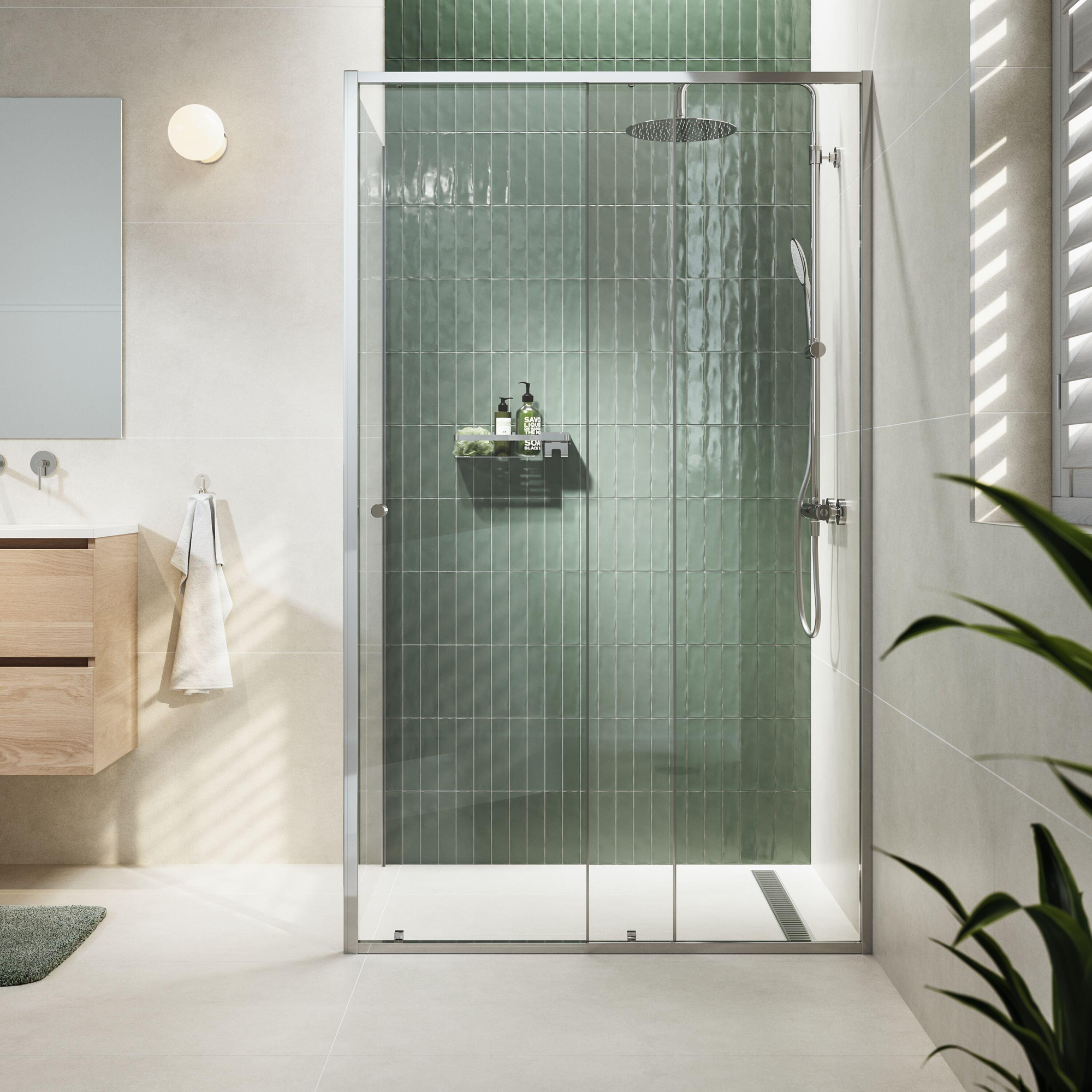 Avec la porte coulissante, vous créez une large entrée sans qu’une porte ne s’ouvre vers l’extérieur, idéal si vous disposez de peu d’espace de mouvement ou si vous devez tenir compte d’un lavabo ou d’un radiateur à proximité. La combinaison de 120x90 cm offre un espace de douche agréable et confortable dans lequel vous pouvez bouger librement sans heurter le verre. L’ouverture de la porte coulissante est agréablement large, de sorte que l’accès est également facile pour les utilisateurs à mobilité réduite ou lorsque vous douchez des enfants. Grâce au guidage stable, la porte coulisse en douceur à l’ouverture comme à la fermeture, ce qui n’est pas seulement confortable, mais contribue aussi à un sentiment de sécurité et de fiabilité. Vous profitez ainsi chaque jour d’une douche spacieuse, même dans une salle de bains plus petite.