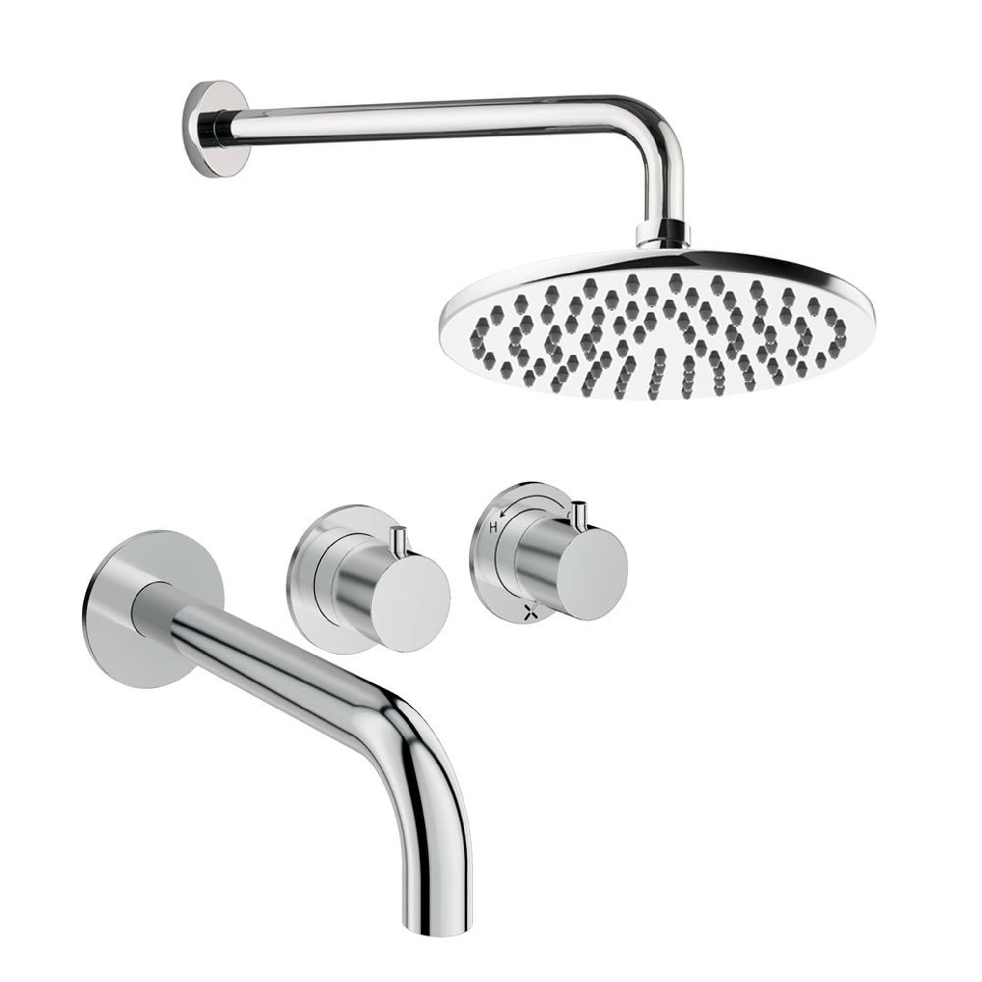 Crosswater Module Ensemble de douche de pluie encastré - 2 poignées - bec de baignoire - pomme de douche 20 cm - bras mural - chrome
