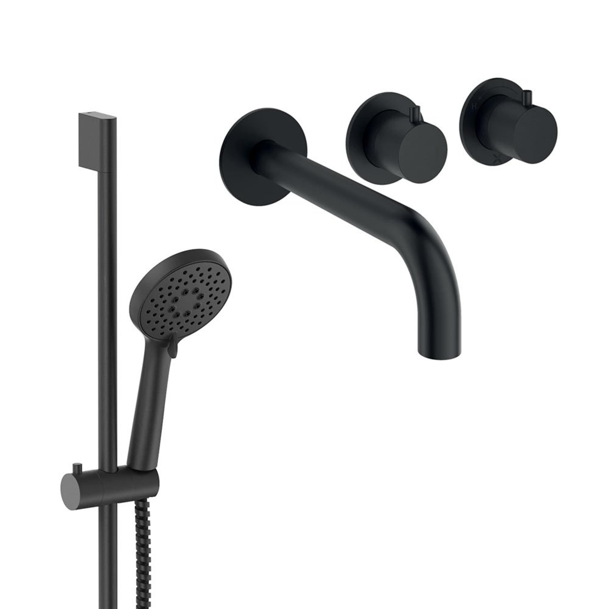 Crosswater Module Ensemble de robinetterie de baignoire - 2 leviers - bec de baignoire - douchette à main - barre de douche - noir mat