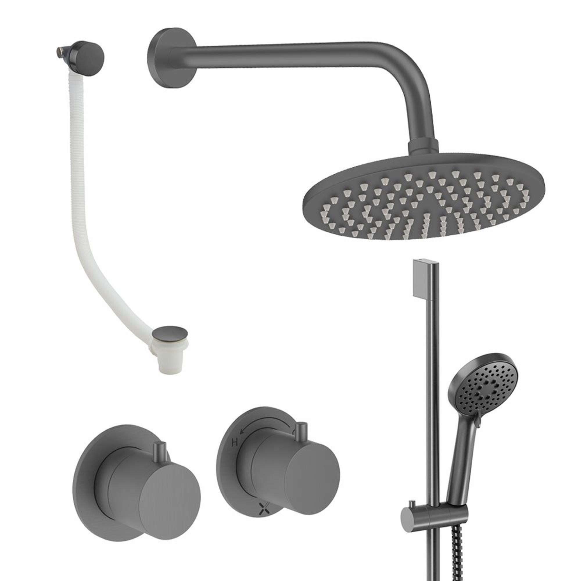 Crosswater Module Ensemble de douche de pluie encastré - 2 poignées - vidage de baignoire - pomme de douche 20 cm - douchette - barre de douche - bras mural - gunmetal