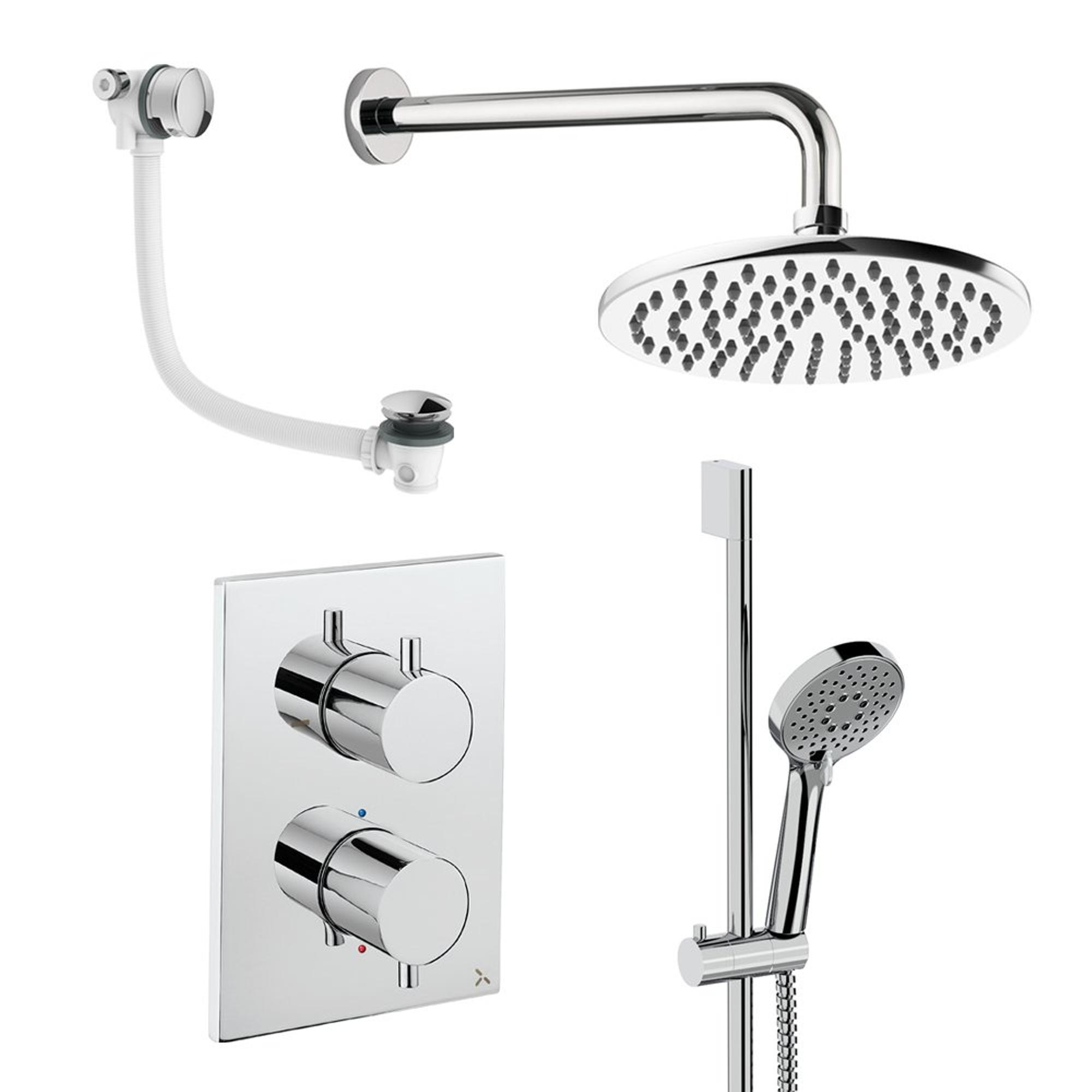 Crosswater MPRO Ensemble de douche de tête encastré - 2 poignées - vidage de bain - pomme de douche 20 cm - douchette à main - barre de douche - bras mural - chrome