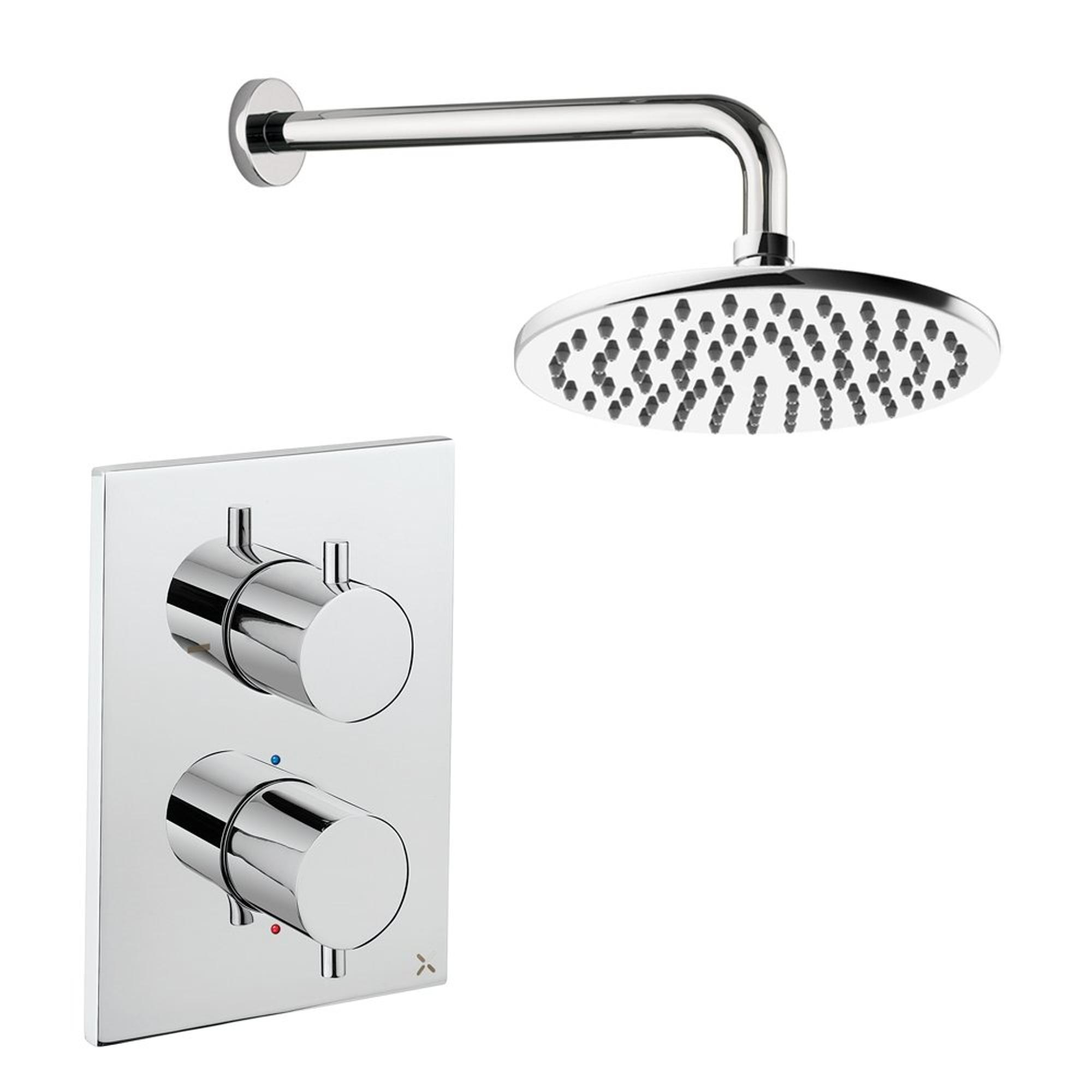 Crosswater MPRO Ensemble de douche de tête encastré - 2 poignées - pommeau de douche 20 cm - bras de douche mural - chrome