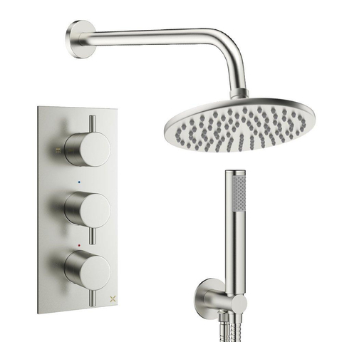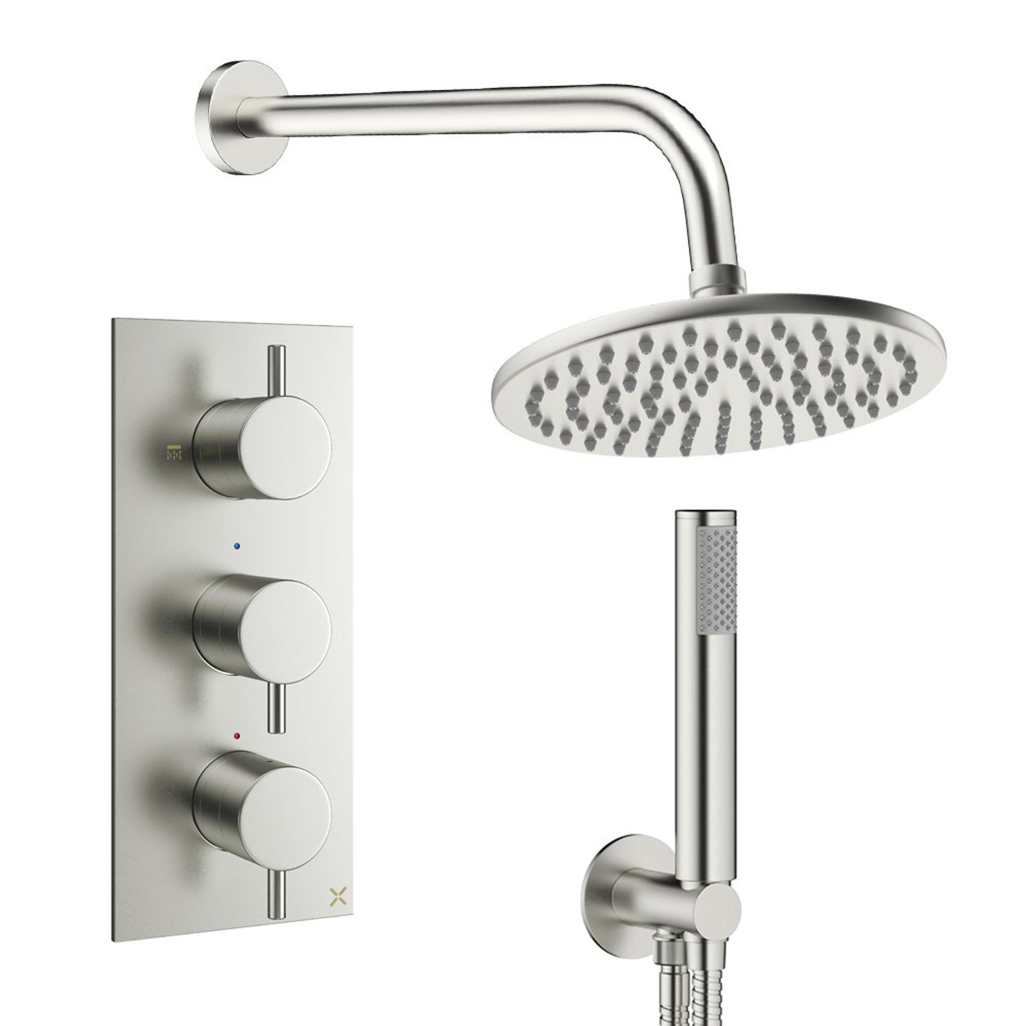 Crosswater MPRO Ensemble de douche de tête encastré - 3 leviers - pomme de douche 20 cm - douchette à main - bras mural - acier inoxydable brossé