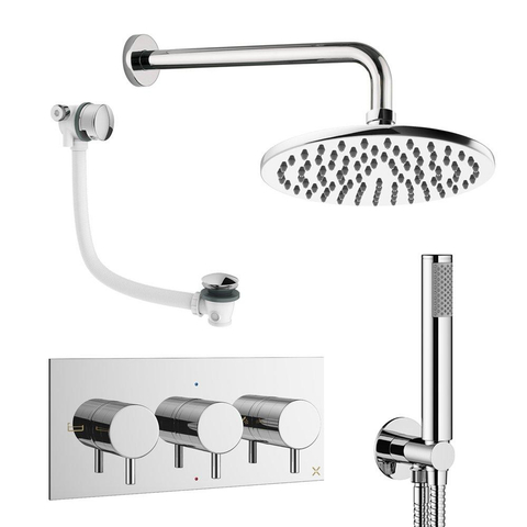 Crosswater MPRO Ensemble de douche de tête encastré - 3 poignées - vidage de baignoire - pomme de douche 20cm - douchette à main - bras mural - chromé
