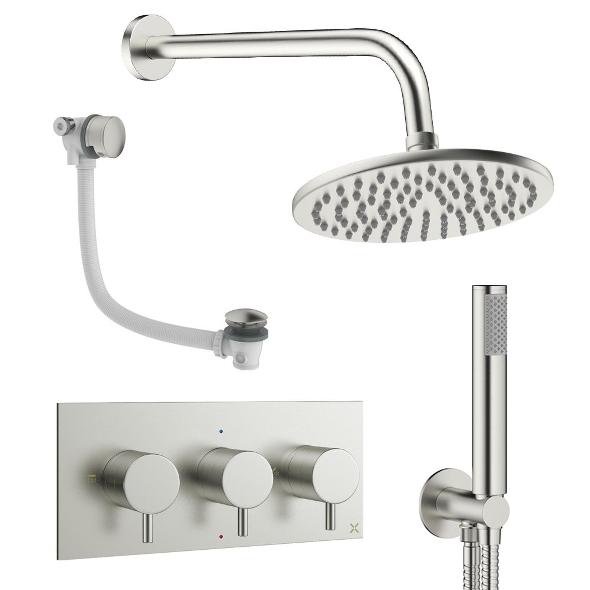 Crosswater MPRO Ensemble de douche pluie encastré - 3 poignées - vidage de baignoire - pomme de douche 20 cm - douchette à main - bras mural - inox brossé