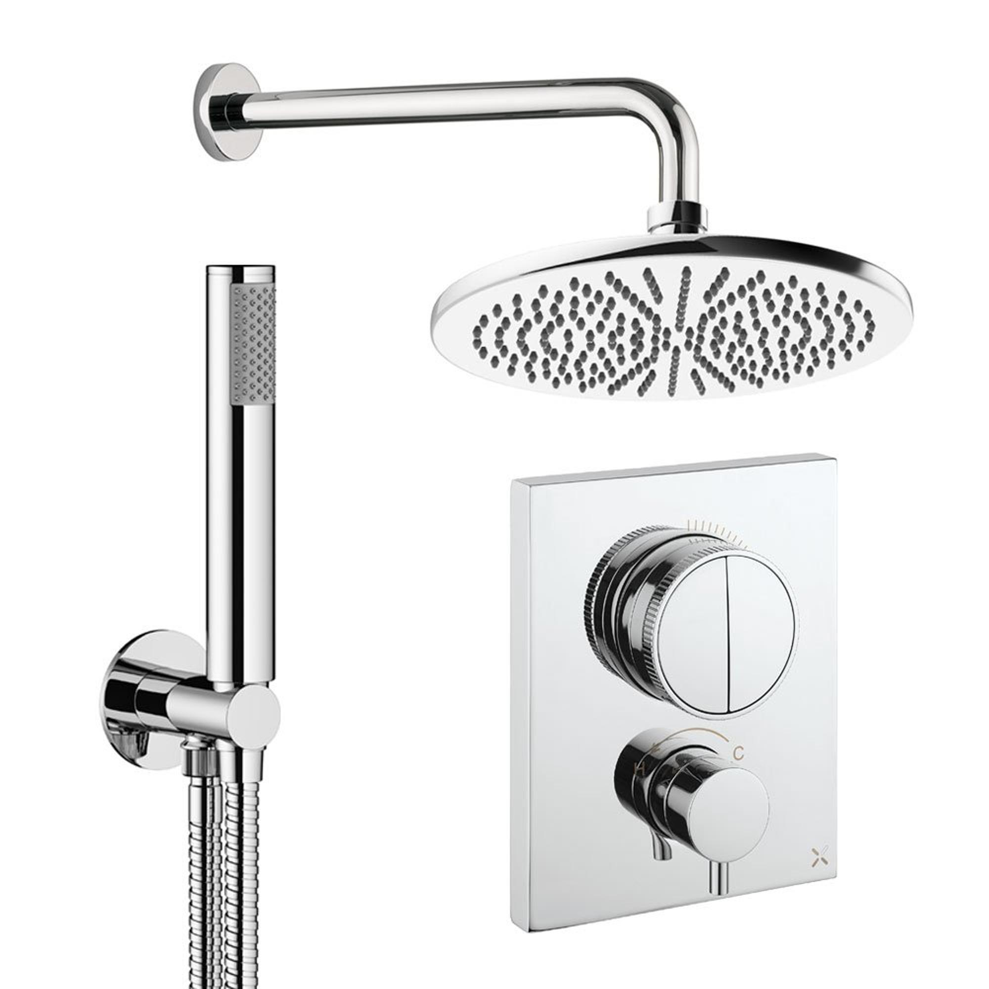 Crosswater MPRO Ensemble de douche de tête encastré - 2 leviers - pomme de douche 30 cm - douchette à main - bras mural - chrome