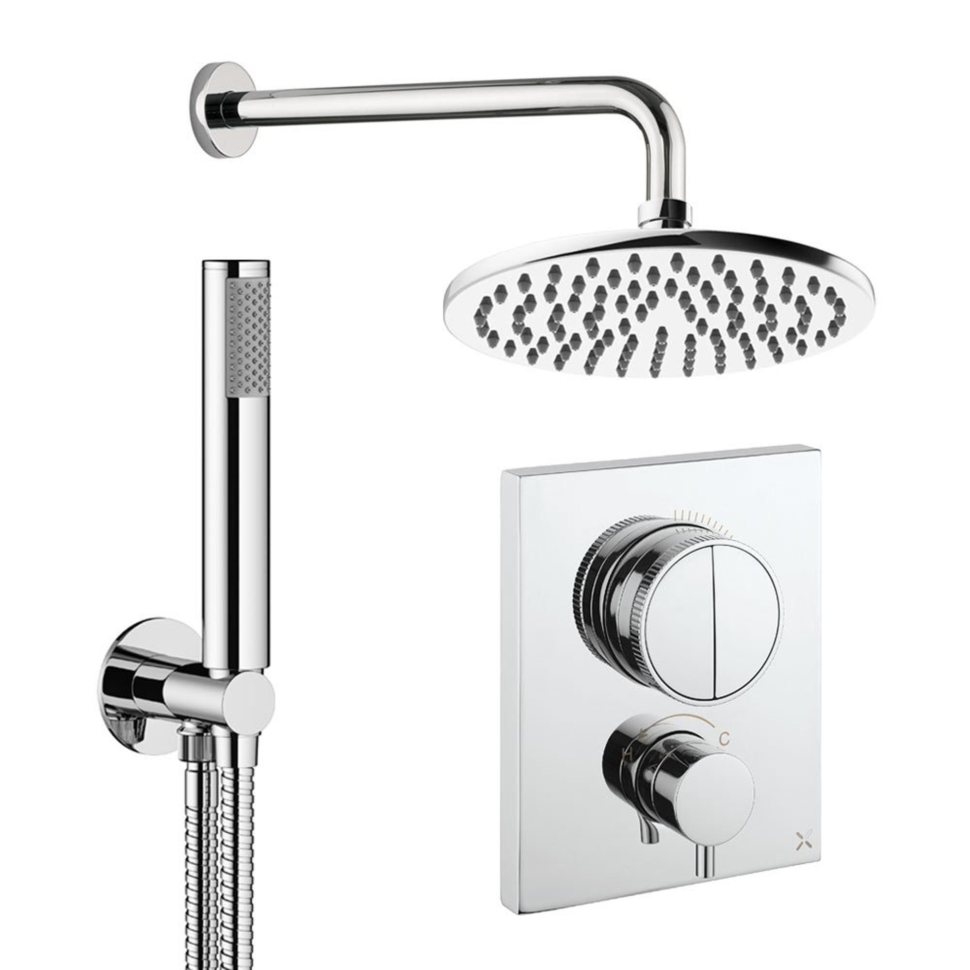 Crosswater MPRO Ensemble de douche de tête encastré - 2 poignées - pomme de douche 20cm - douchette à main - bras mural - chrome