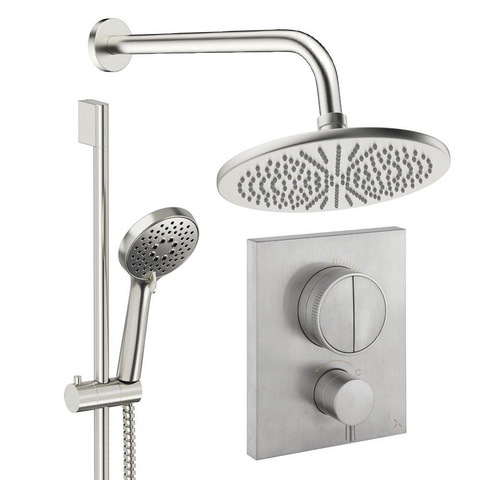 Ce set de douche de tête encastré complet est idéal si vous souhaitez transformer votre coin douche en un espace de douche luxueux digne d’un hôtel, sans faire de concessions sur le confort et la facilité d’utilisation. Grâce à la combinaison d’une généreuse douche de tête et d’une douchette à main pratique, vous profitez aussi bien de moments de bien-être relaxants que d’une douche fonctionnelle au quotidien. L’ensemble s’intègre parfaitement dans les salles de bains modernes et intemporelles, surtout si vous aimez les lignes épurées et une apparence calme et haut de gamme. Grâce au mitigeur encastré, le mur reste bien dégagé et davantage d’espace se libère dans la douche, ce qui est particulièrement agréable dans les salles de bains aussi bien compactes que spacieuses. Si vous recherchez une solution durable avec des matériaux de haute qualité, une commande bien pensée et un look inox brossé stylé, alors c’est un choix particulièrement judicieux pour une rénovation ou un projet de construction neuve.