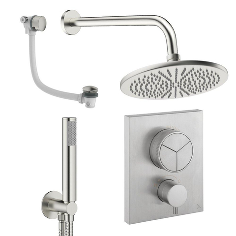 Crosswater MPRO Ensemble de douche de tête encastré - 2 poignées - vidage de baignoire - douche de tête 30 cm - douchette - bras mural - acier inox brossé