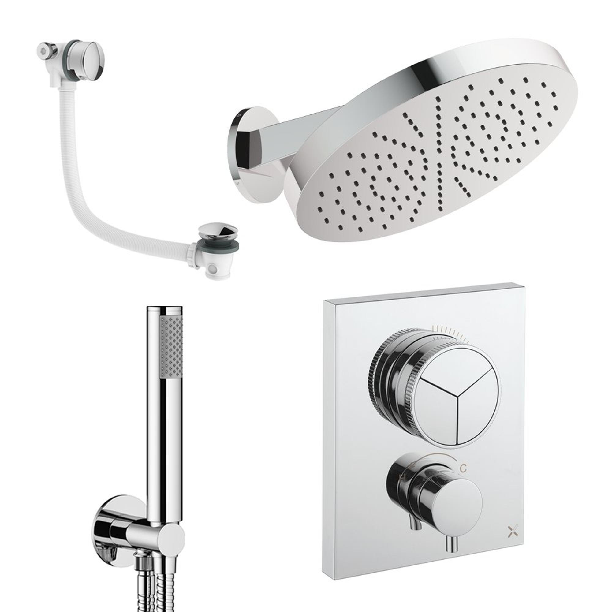 Crosswater MPRO Ensemble de douche pluie encastré - 2 poignées - vidage de baignoire - pomme de douche 30 cm - douchette à main - bras mural - chrome