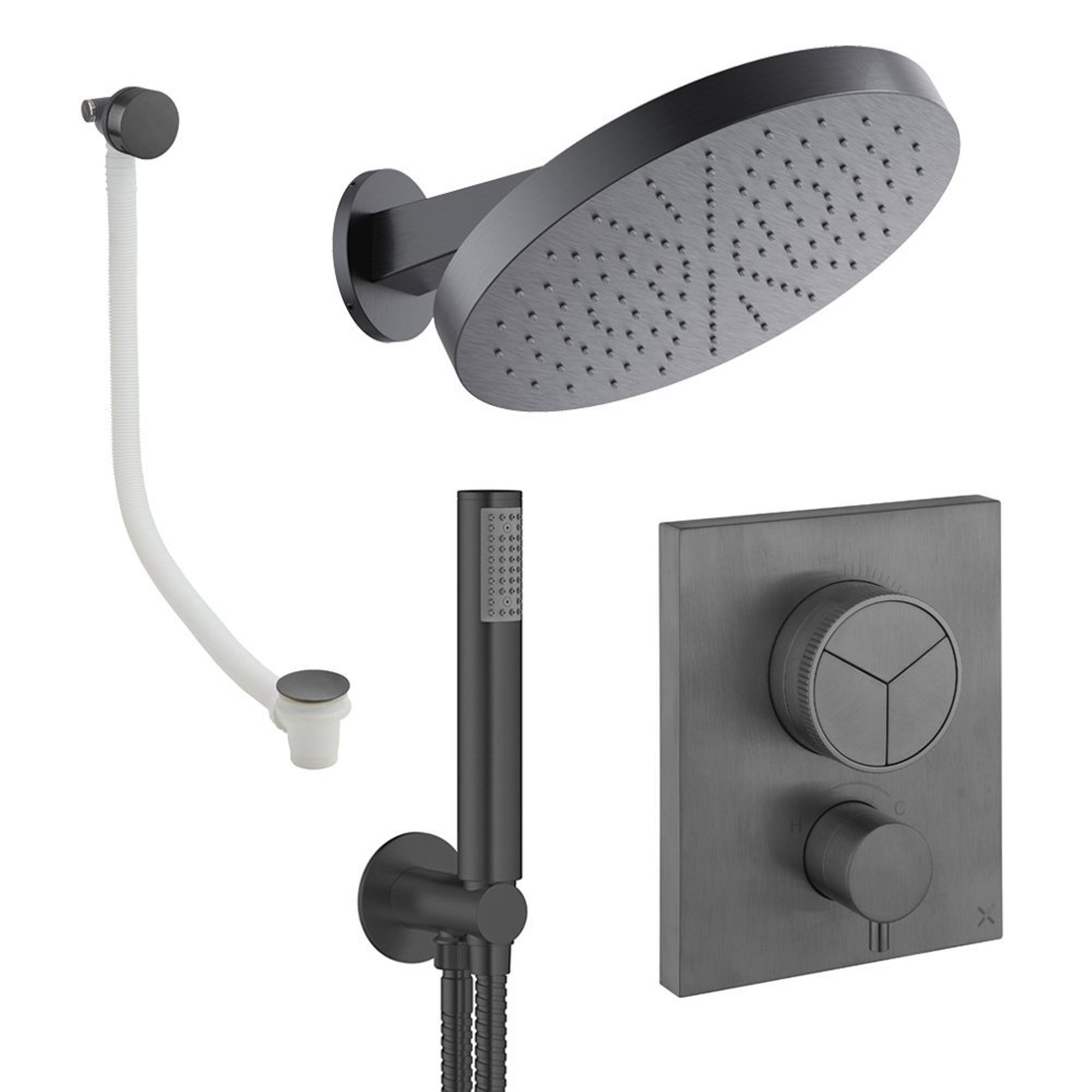 Crosswater MPRO Ensemble de douche de tête encastré - 2 poignées - vidage de baignoire - pomme de douche 30 cm - douchette à main - bras mural - gunmetal
