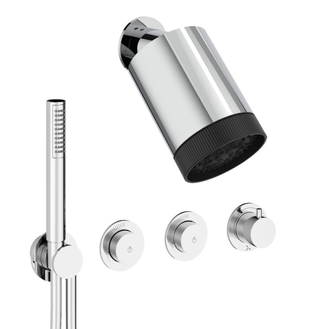Crosswater Module Ensemble de douche de pluie encastré - 3 leviers - pomme de douche principale en barre - douchette à main - bras mural - chrome