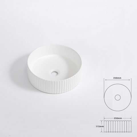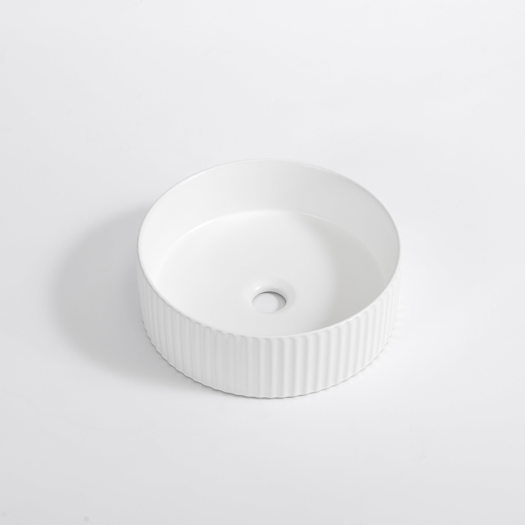 FugaFlow Efficiente Arredo Vasque - 36 × 36 × 12.5 cm - striée - ronde - céramique - blanc mat