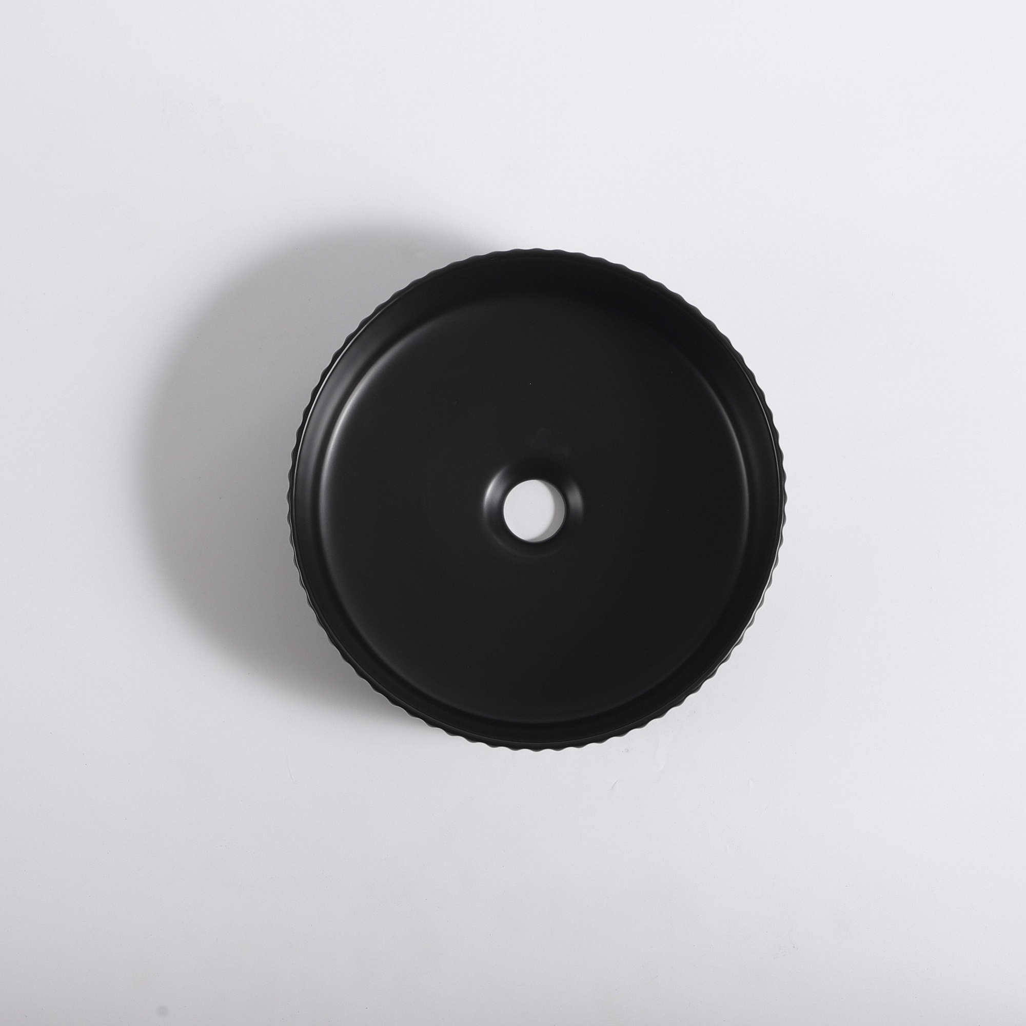 FugaFlow Efficiente Arredo Vasque - 36 × 36 × 12.5 cm - striée - ronde - céramique - noir mat
