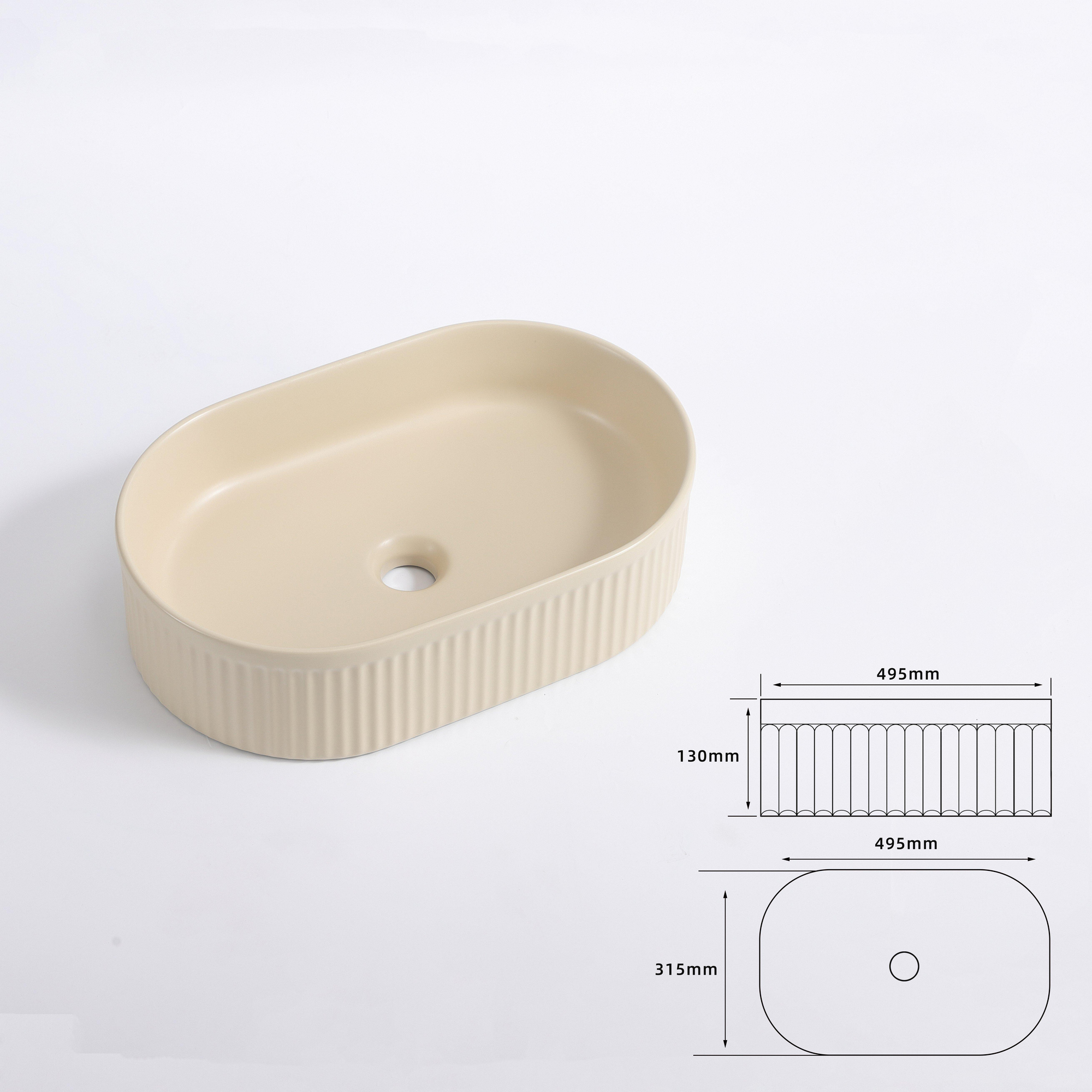FugaFlow Efficiente Arredo Vasque - 50 × 32 × 12 cm - striée - ovale - céramique - beige