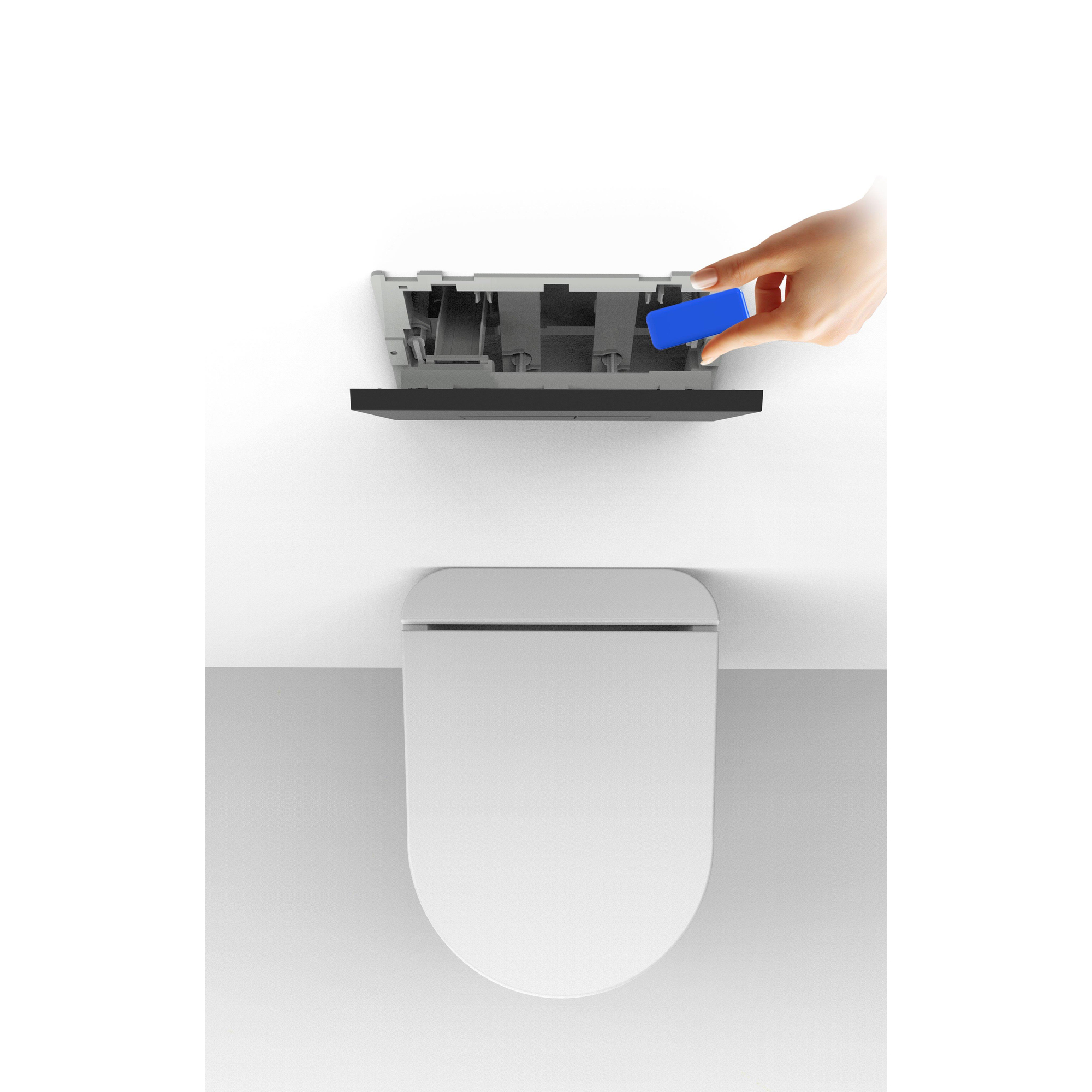 Vous souhaitez combiner une chasse d'eau fraîche avec un design élégant ? Le support de bâtonnets QeramiQ Blue est compatible avec différentes plaques de commande, notamment la QeramiQ Push et plusieurs modèles Geberit Sigma (Sigma01, Sigma10, Sigma20, Sigma21, Sigma30 et Sigma50). Ainsi, vous choisissez une plaque de commande qui s'harmonise parfaitement avec le style de votre salle de bains.