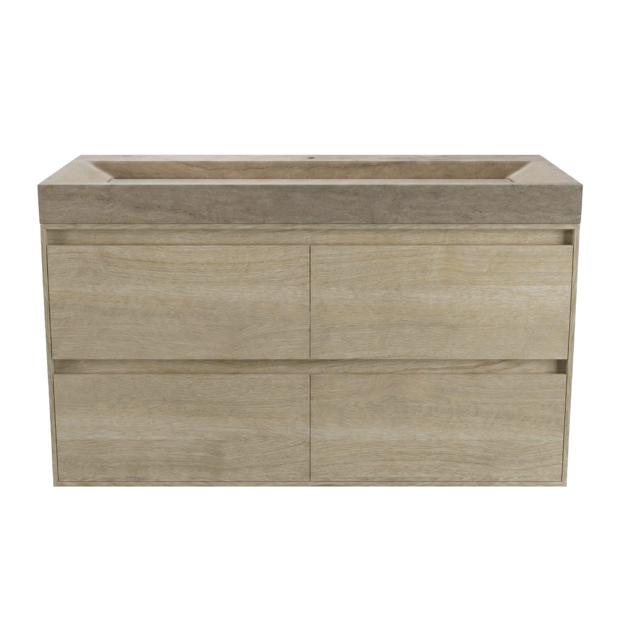 Forzalaqua Ibiza Ensemble meuble de salle de bains - 120x50x70cm - 4 tiroirs - lavabo en travertin - 1 trou de robinet - jeu de supports - bouchen de vidage - smoke