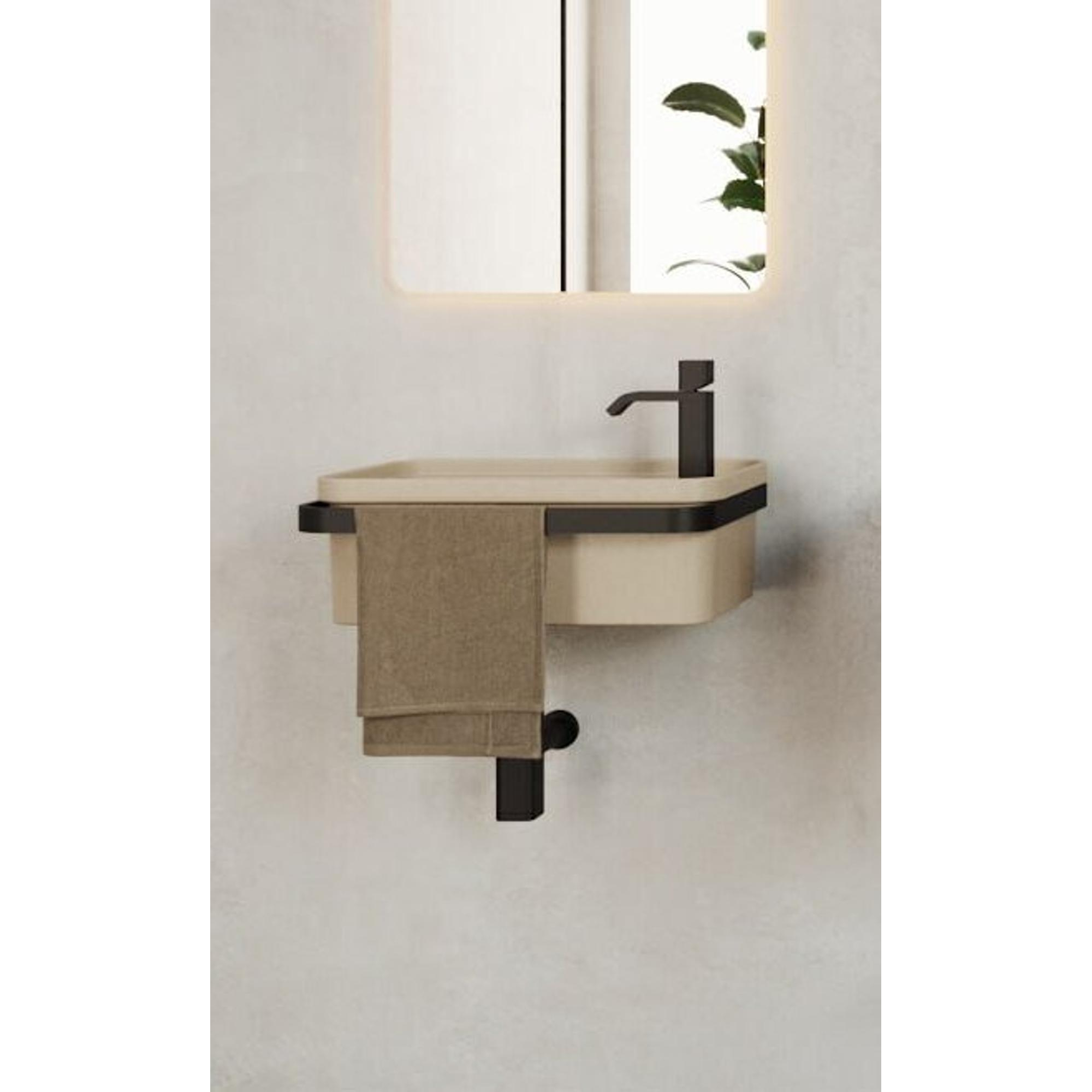 QeramiQ Élan Ensemble de fontaine - 45x27cm - 1 trou de robinet - céramique - porte-serviettes - beige mat