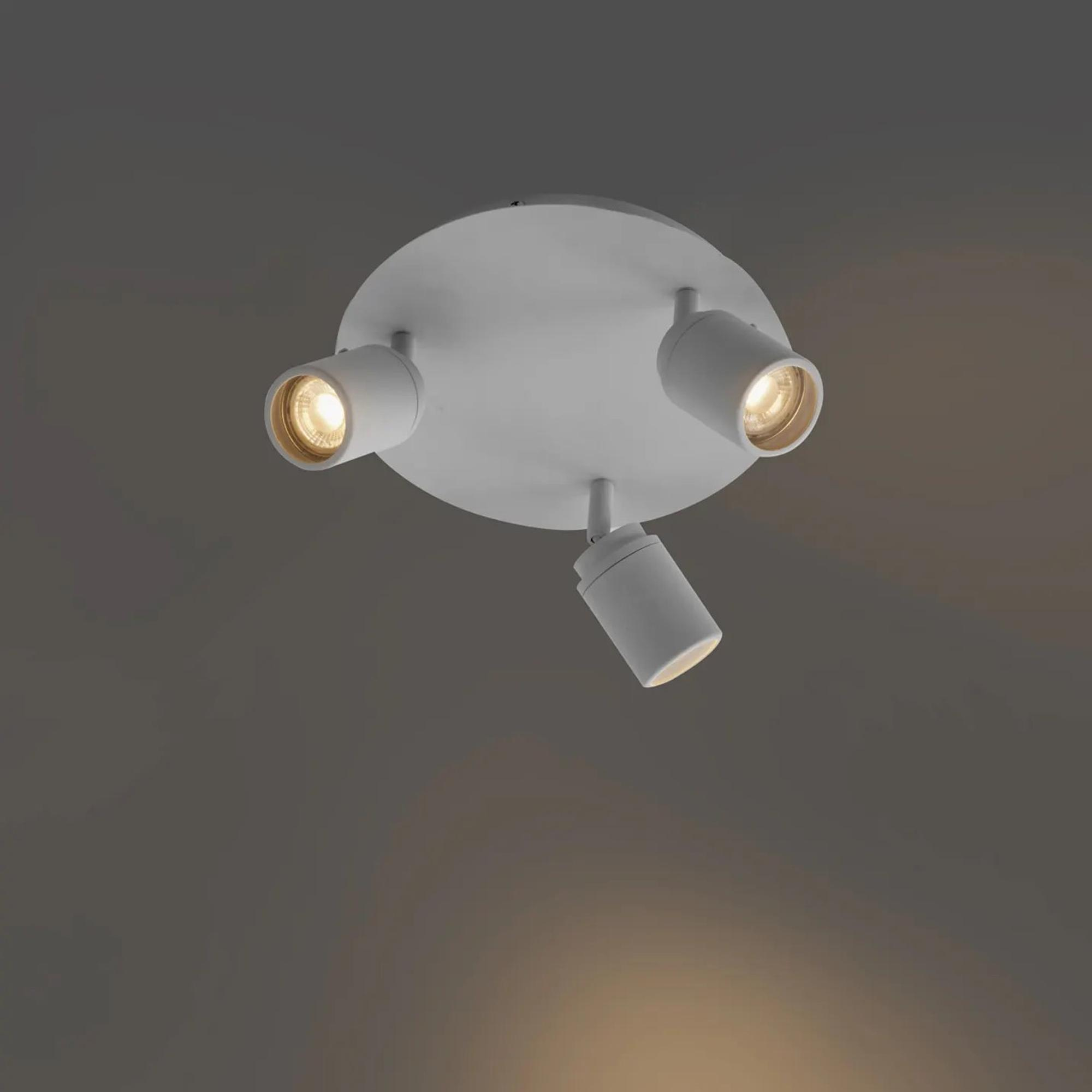 Grâce aux trois sources lumineuses GU10, vous bénéficiez d’une répartition homogène de la lumière, ce qui limite au minimum les ombres. C’est appréciable pour les gestes du quotidien comme se raser, se maquiller ou habiller les enfants. Avec un diamètre de 25 cm, le luminaire reste suffisamment compact pour les petites salles de bains, tout en offrant un rendement lumineux suffisant pour une pièce de taille moyenne. Le montage au plafond fait que vous ne perdez pas d’espace précieux et la couleur blanche permet au luminaire de se fondre joliment dans un plafond blanc. Grâce au raccordement 220-230 V, vous le branchez directement sur le secteur, ce qui rend l’installation claire pour le professionnel ou le bricoleur expérimenté.