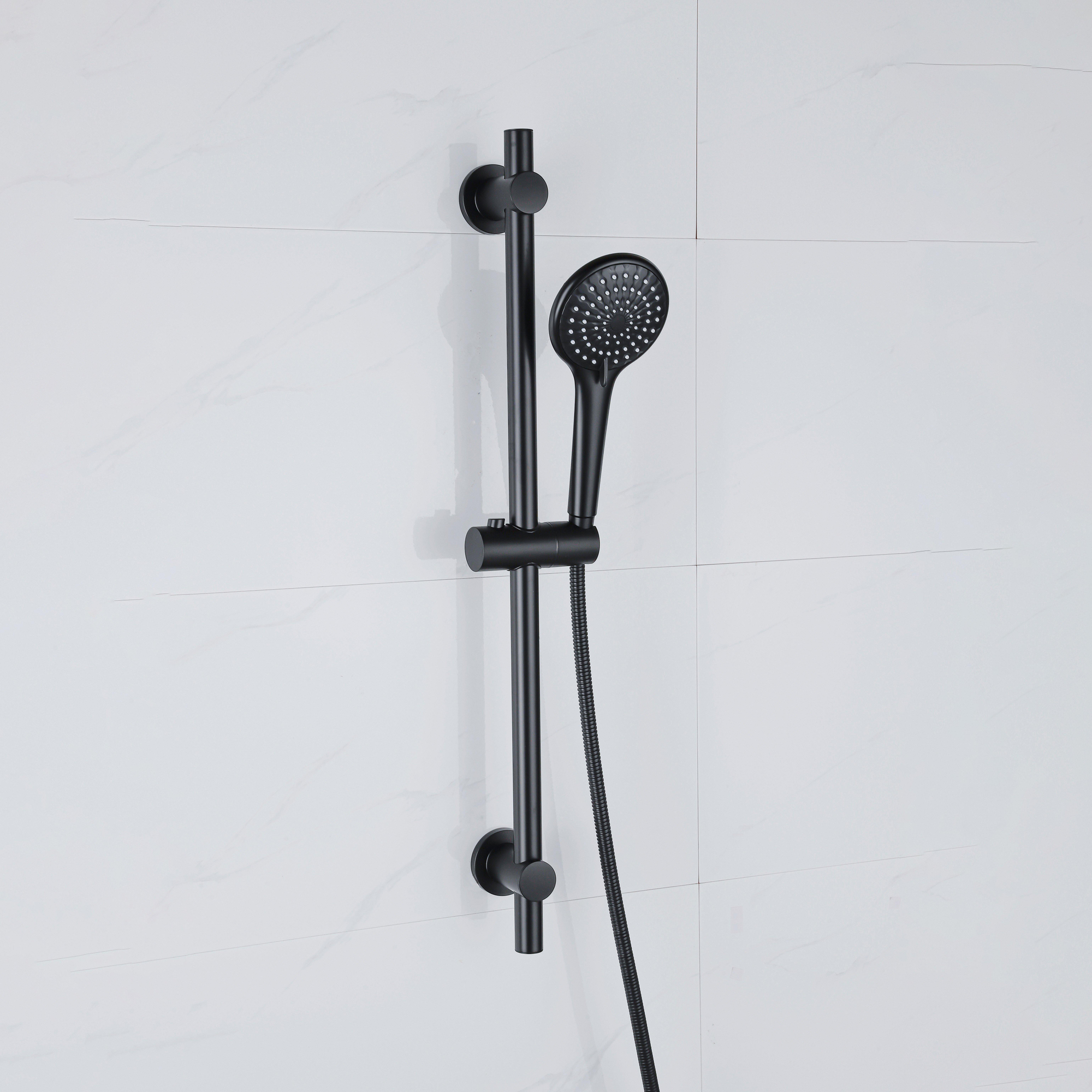 La barre de douche de 70 cm rend cet ensemble particulièrement convivial. Vous réglez facilement la hauteur de la douchette afin que chacun à la maison profite d’un jet agréable, des enfants aux adultes de grande taille. Le support maintient la douchette fermement en place, tandis que le flexible de douche métallique suit vos mouvements en souplesse et résiste aux chocs. La fixation sur la barre de douche permet de garder le coin douche bien ordonné : vous n’avez pas besoin de supports séparés ou d’accessoires supplémentaires pour ranger la douchette proprement. Cela rend l’ensemble très adapté aux foyers occupés où la douche est utilisée intensivement, mais aussi aux salles de bains d’appoint ou familiales dans lesquelles vous souhaitez autant de flexibilité que possible. Ainsi, votre douche reste propre, pratique et prête pour une utilisation quotidienne.