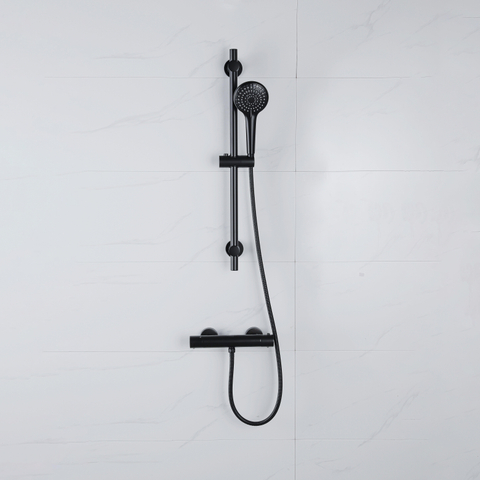 Adema Sparkle 2.0 Ensemble de douche - robinet thermostatique - barre de douche 70 cm - douchette ronde - flexible de douche métallique - noir mat