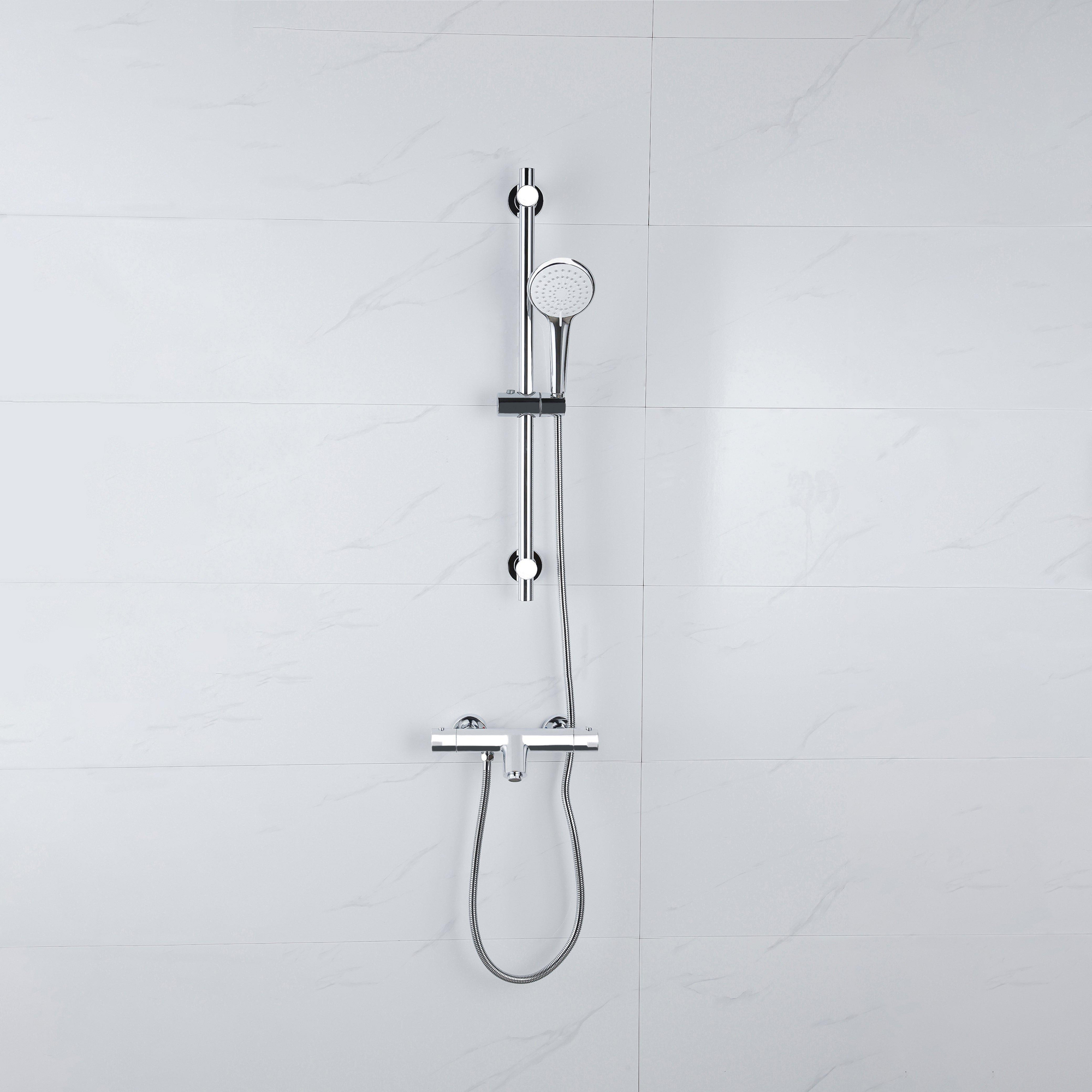 Vous cherchez une solution complète et fiable pour votre bain et votre douche, sans devoir combiner des éléments sans fin ? Cet ensemble est idéal si vous souhaitez faire un choix pratique, sûr et en même temps élégant pour une salle de bains familiale, une salle de bains d'appoint ou un espace compact où le bain et la douche doivent rester confortables. Grâce à la commande thermostatique, vous profitez d’une température de l’eau stable, ce qui est particulièrement agréable s’il y a des enfants à la maison ou si vous souhaitez simplement vous détendre en toute sérénité. La combinaison de chrome brillant, d’une barre de douche épurée et d’une douchette ronde s’intègre facilement dans les salles de bains modernes et intemporelles. Que vous cherchiez une mise à niveau pour un ancien robinet de baignoire ou que vous aménagiez une toute nouvelle salle de bains, cet ensemble offre un bel équilibre entre design, confort et sécurité.