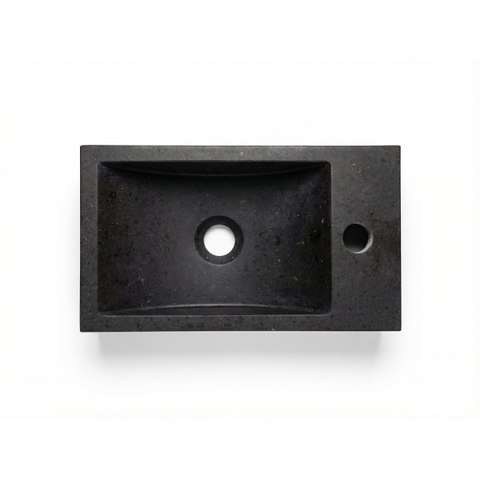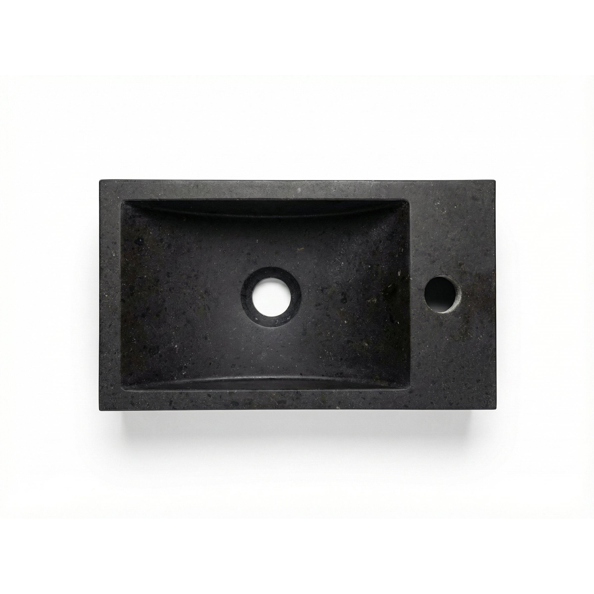 - Lavabo foncé en pierre naturelle pour une touche luxueuse et intemporelle dans votre salle de bains