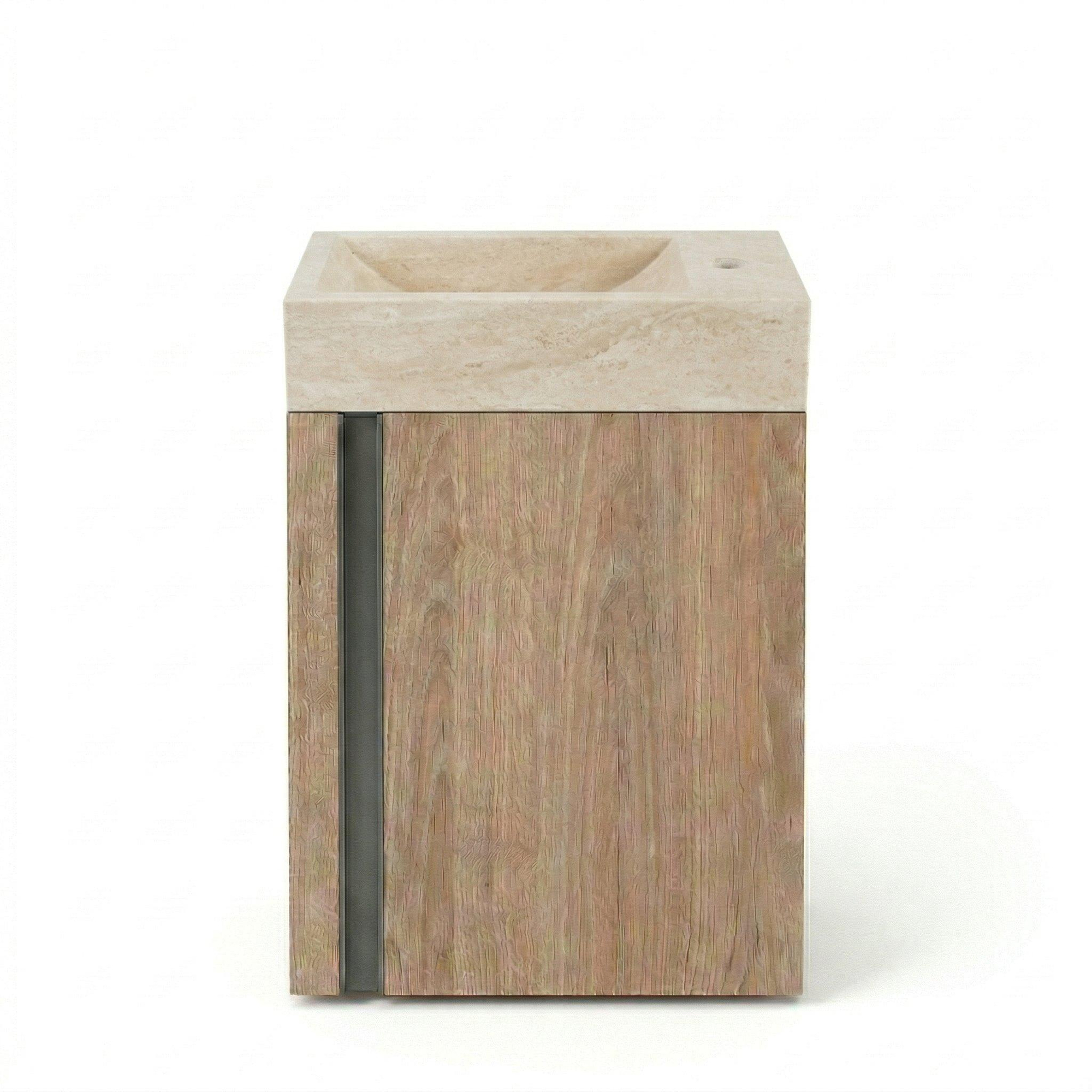 Saniclass Chaci Ensemble de lave-mains - 40x65cm - 1 porte - 1 trou de robinet - droit - lavabo travertin - chêne