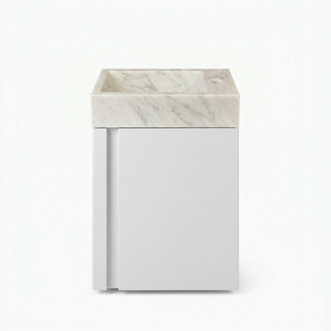 - Ensemble de lavabo compact Saniclass Chaci avec meuble lave-mains et lavabo pierre naturelle marbre en blanc mat