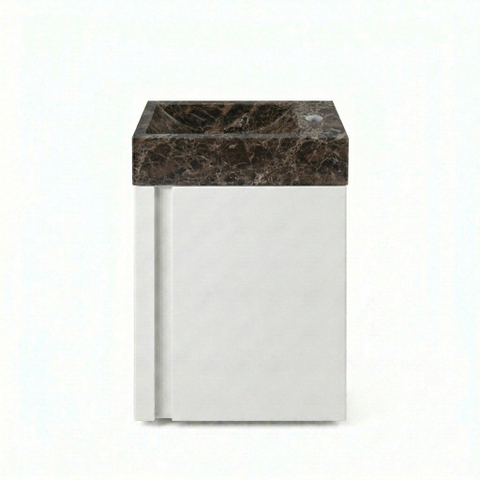 - Lave-mains dark emporador offrant un contraste luxueux avec le meuble blanc