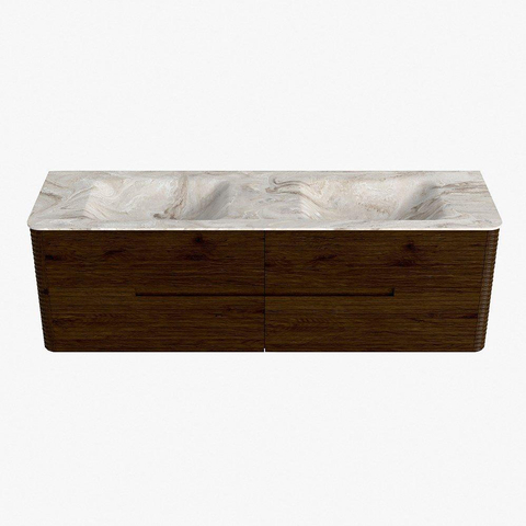 Mondiaz CIRO-DLUX Ensemble de meubles de salle de bains - 160x45x50cm - Plan vasque solid surface Frappe - 2 vasques double - sans trous de robinet - 4 tiroirs - Noyer