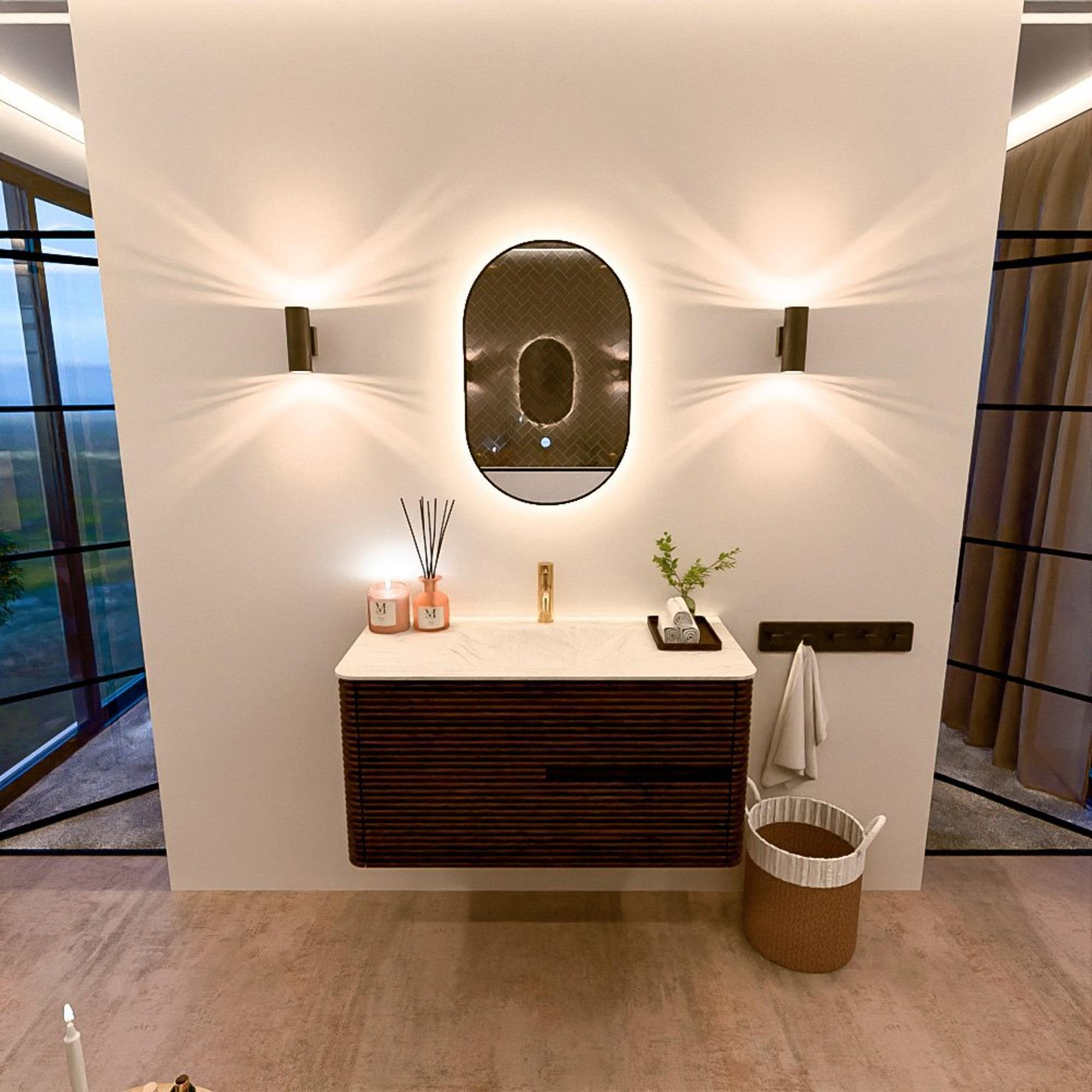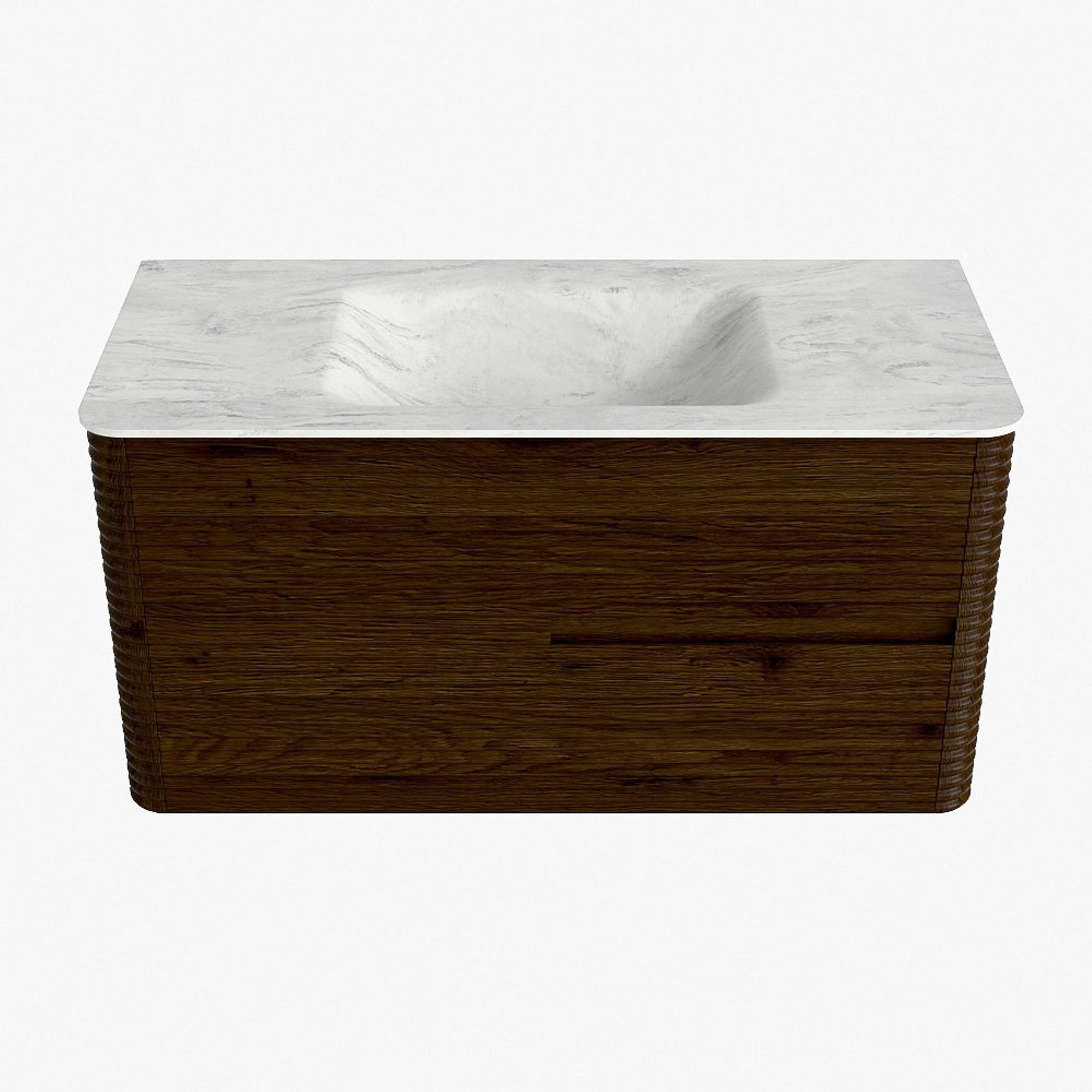 Mondiaz CIRO-DLUX Ensemble de meubles de salle de bains - 100x45x50cm - lavabo solid surface Opalo - 1 vasque au milieu - 1 trou de robinet - 2 tiroirs - Noyer