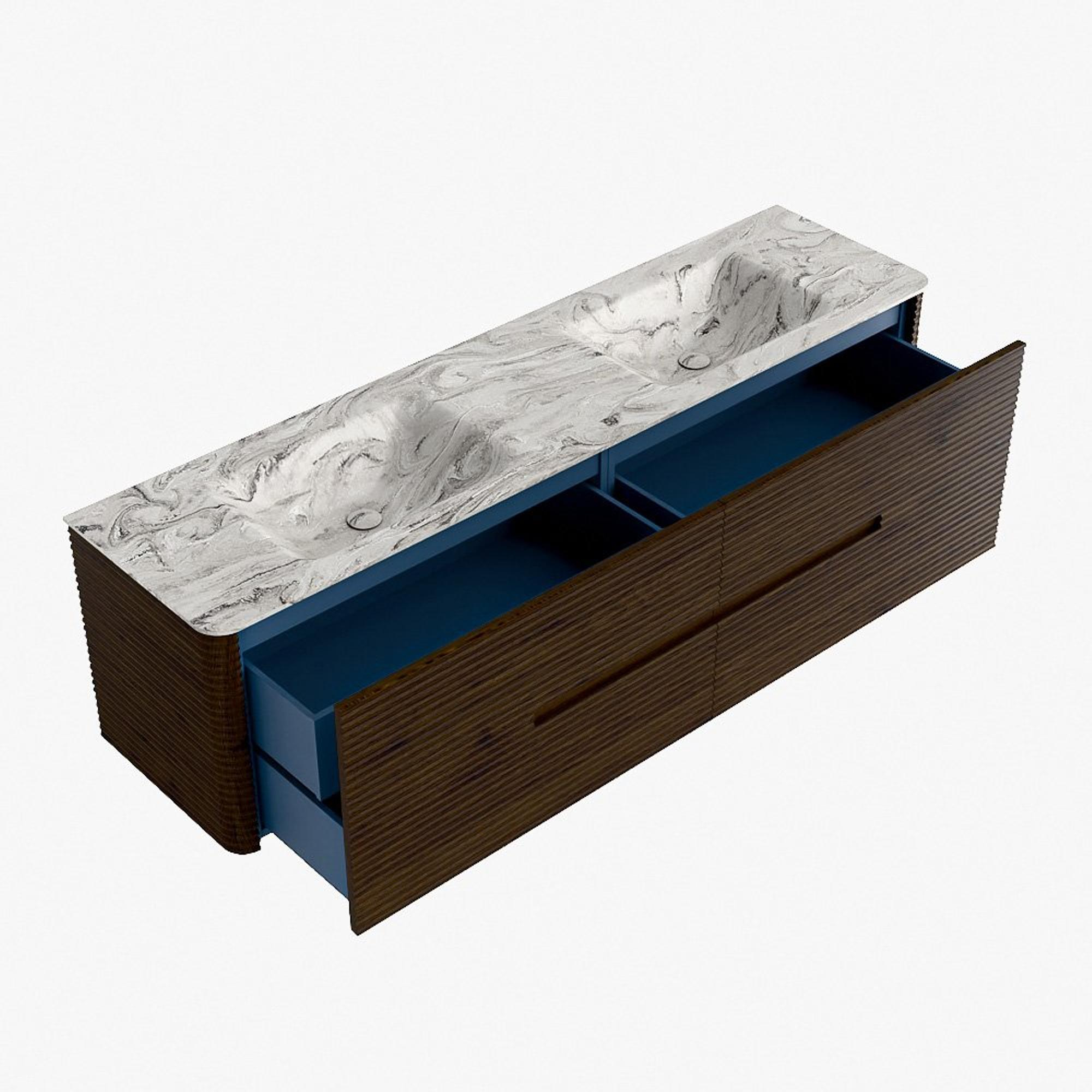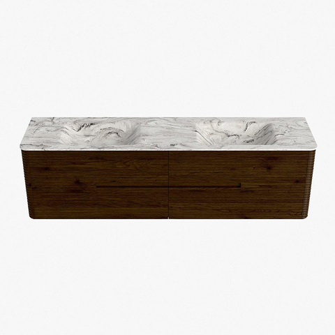 Mondiaz CIRO-DLUX Meuble de salle de bains - 180x45x50cm - Vasque en solid surface Glace - 2 vasques Double - sans trous pour robinets - 4 tiroirs - Noyer