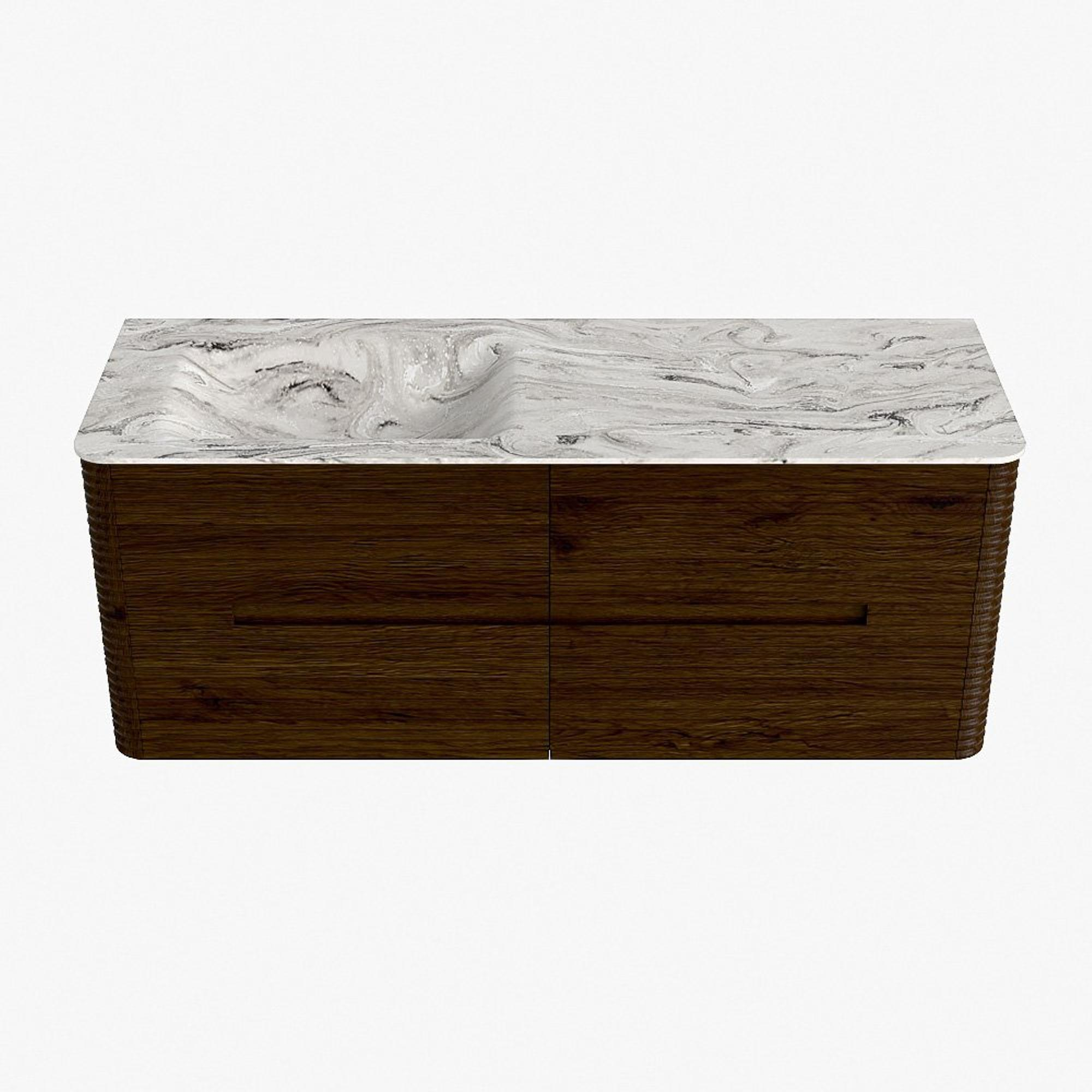 Mondiaz CIRO-DLUX Ensemble de meubles de salle de bains - 130x45x50cm - lavabo en solid surface Glace - 1 vasque à gauche - sans trous de robinet - 4 tiroirs - Noyer