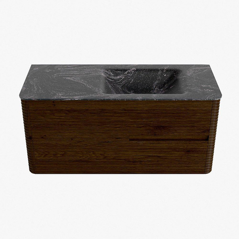 Mondiaz CIRO-DLUX Ensemble de meubles de salle de bains - 110x45x50cm - Lavabo en solid surface Lava - 1 vasque à droite - 1 trou de robinet - 2 tiroirs - Noyer